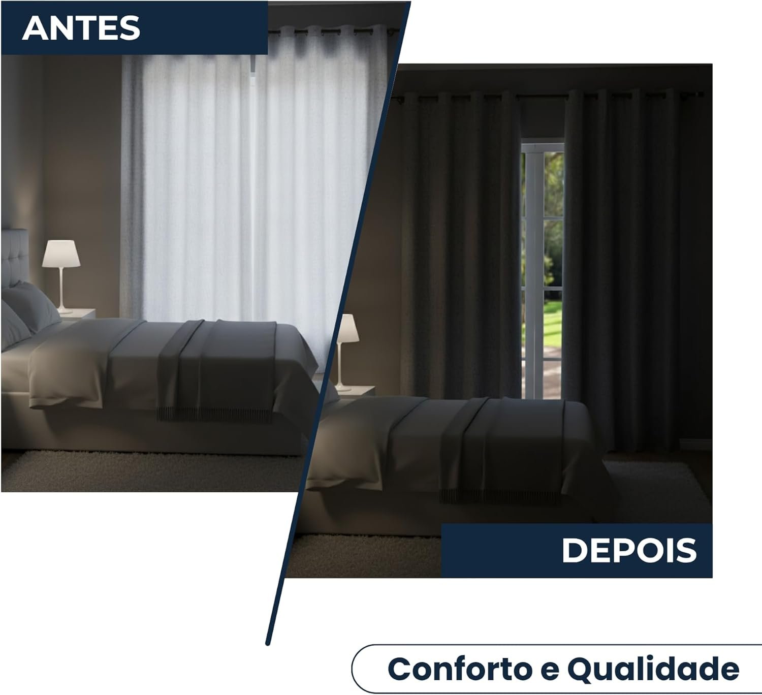 Cortina Blackout 2,80m x 2,50m – Conforto Térmico, Privacidade e Funcionalidade Aposte em um ambiente mais aconchegante e protegido com a cortina blackout ideal para bloquear a luz externa e proporcionar mais conforto ao seu espaço. Funcional, elegante e com excelente acabamento, é a escolha perfeita para quem valoriza praticidade no dia a dia. Especificações do Produto: Modelo: Cortina Blackout Medidas totais: 2,80m de largura x 2,50m de altura Material: PVC Sistema de instalação: Ilhós (barrinha não inclusa) Indicado para varões de até 2,00m Uso recomendado: Quarto, sala, escritório ou ambientes que exigem escurecimento ⸻ Benefícios da Cortina Blackout Bloqueio total da luz solar direta Maior conforto térmico e acústico Garante total privacidade Tecido de alta durabilidade e fácil limpeza Design moderno e versátil, combinando com diversos estilos de decoração ⸻ Dicas de Uso Ideal para ambientes que precisam de escurecimento, como quartos e salas de TV Perfeita para quem busca maior conforto térmico e controle de luminosidade Combine com tapetes e móveis de tons neutros para um visual elegante