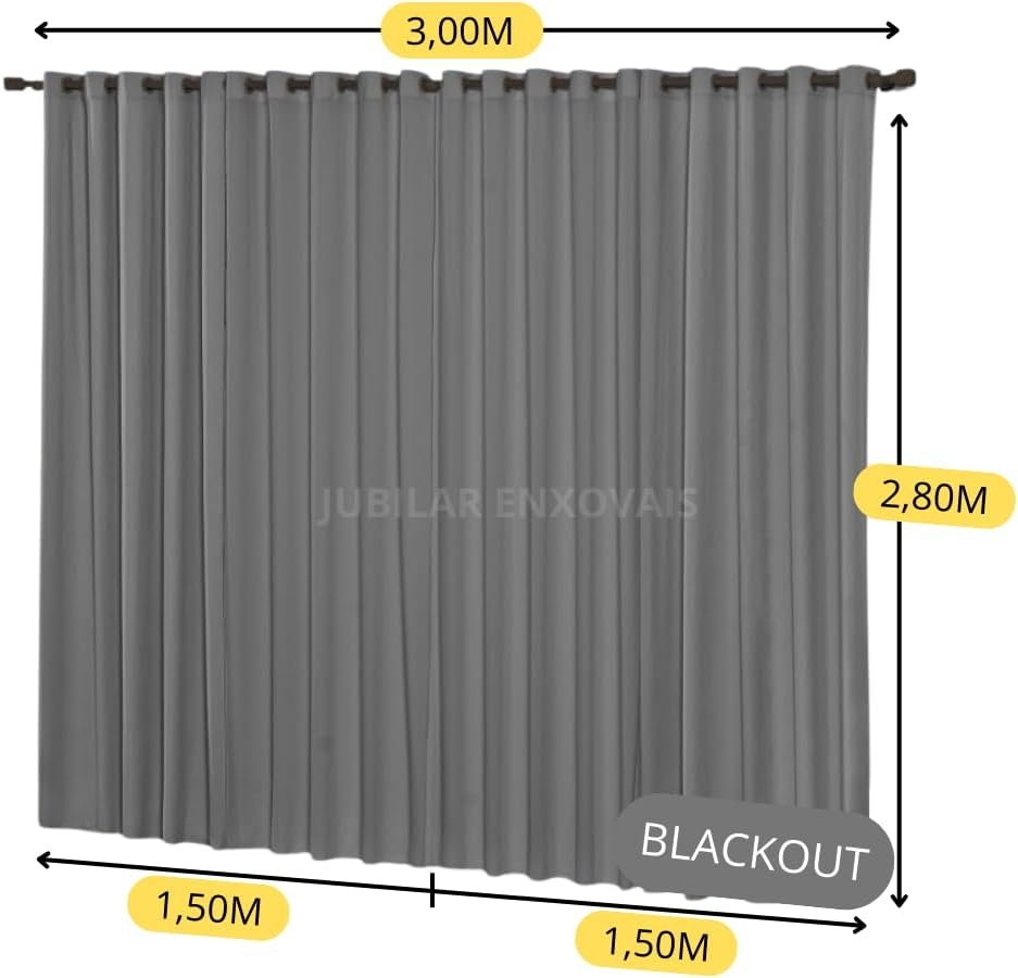 DIMENSÕES GENEROSAS: Cortina com 3,00 metros de largura por 2,80 metros de altura, ideal para varões de até 2,5 metros para melhor franzimento