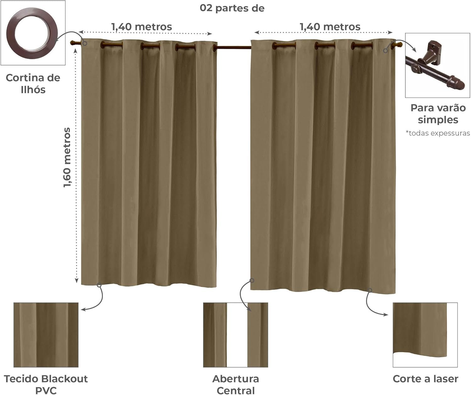✅ Design Elegante com Ilhós Reforçados – Caimento perfeito e instalação prática em varão simples.