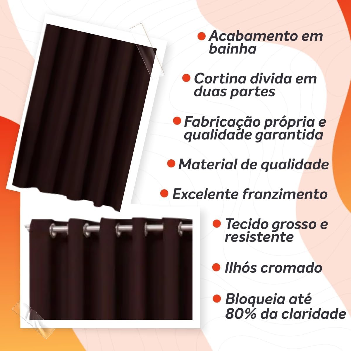As cortinas blackout são um tipo de cortina projetada para bloquear completamente a luz do sol. Eles são feitas com um tecido grosso que não permite a passagem de luz. Elas são ideais para dormitórios, salas e quartos e qualquer habitação onde se necessite de total proteção. Também pode ajudar a reduzir o ruído exterior e a manter a temperatura da habitação. As cortinas blackout estão disponíveis em uma variedade de cores e estilos para se adaptar a qualquer decoração. Cortina Blackout em Tecido 3,00m x 2,80m. Cortina em tecido blackout, bloqueia 80% da claridade, os ilhós são redondos e cromados, o tecido tem um excelente caimento. Medidas: 3,00m largura x 2,80m altura Composição: 100% Poliéster