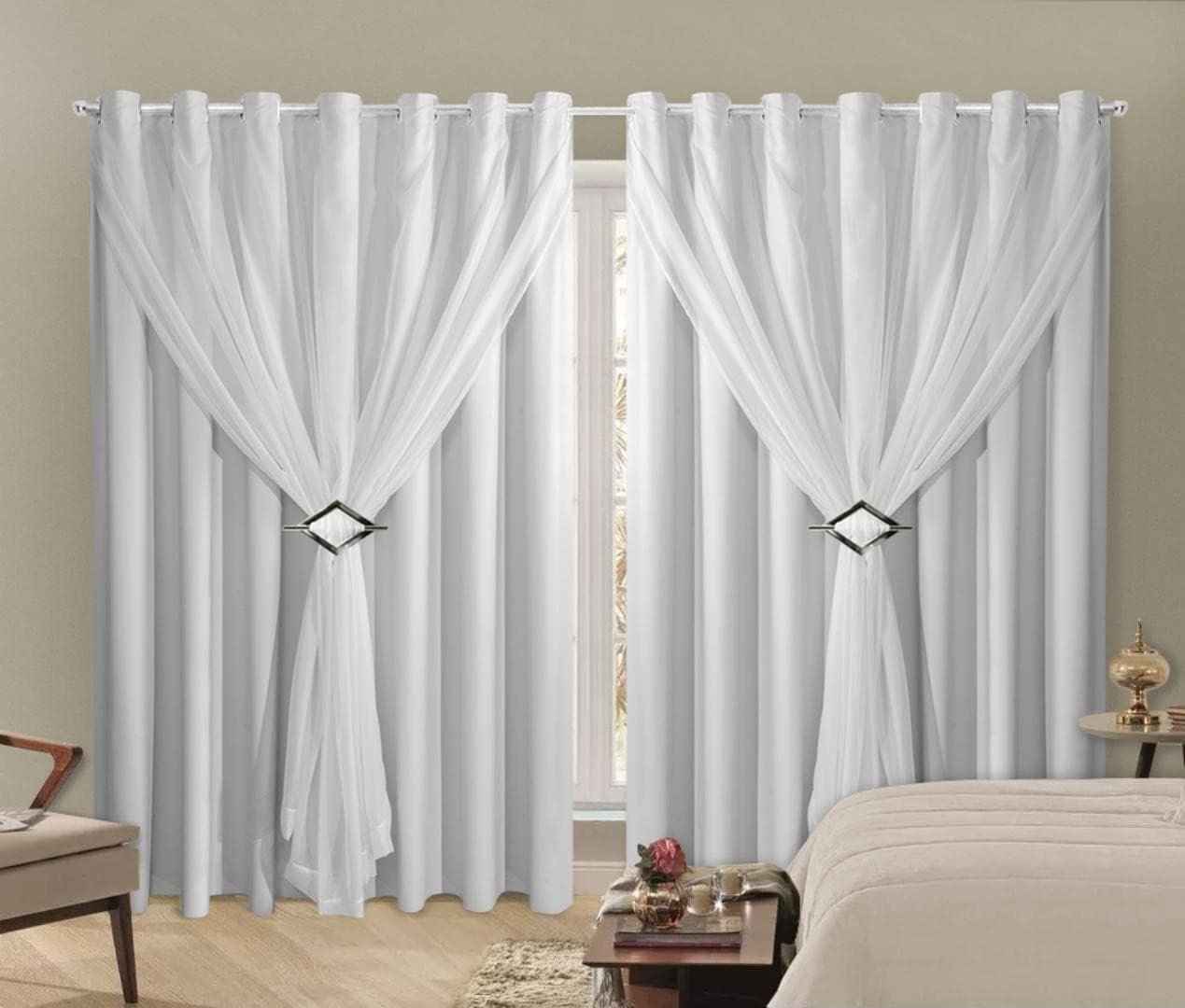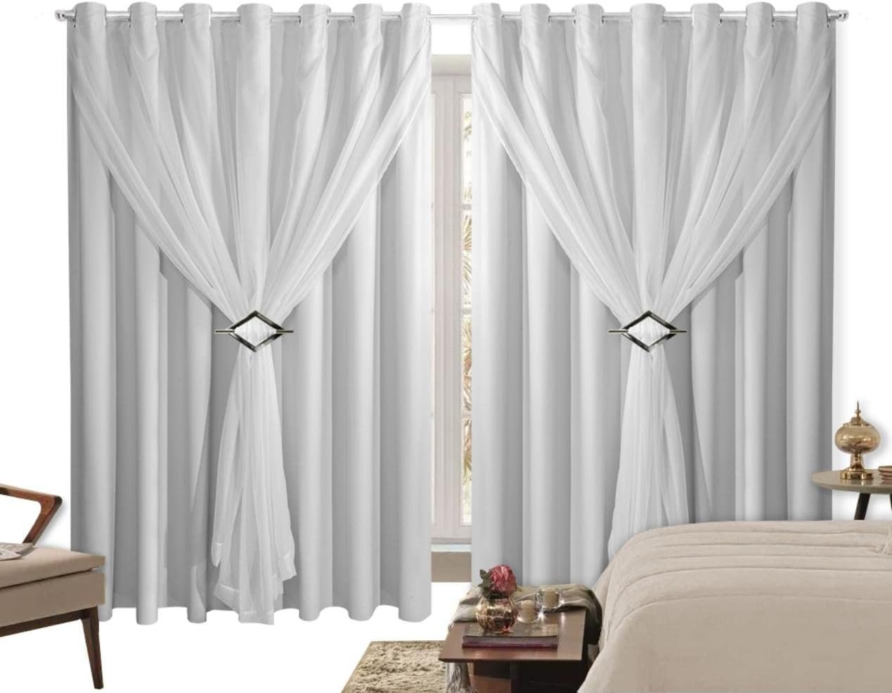 Cortina Blackout Corta Luz Com Voil Composição do produto: Forro 100% Policloreto de Vinila (PVC) Tecido superior em Voal 100% Poliéster Acabamento feito na bainha O produto é confeccionado em PVC, sendo um tipo de plástico especialmente feito para confecção de cortinas, possuindo uma textura na parte frente que imita tecido. A parte de trás do PVC é da cor cinza, sendo a parte cinza responsável por vedar 100 % a luz, com isso ajuda na preservação de pisos e móveis do envelhecime