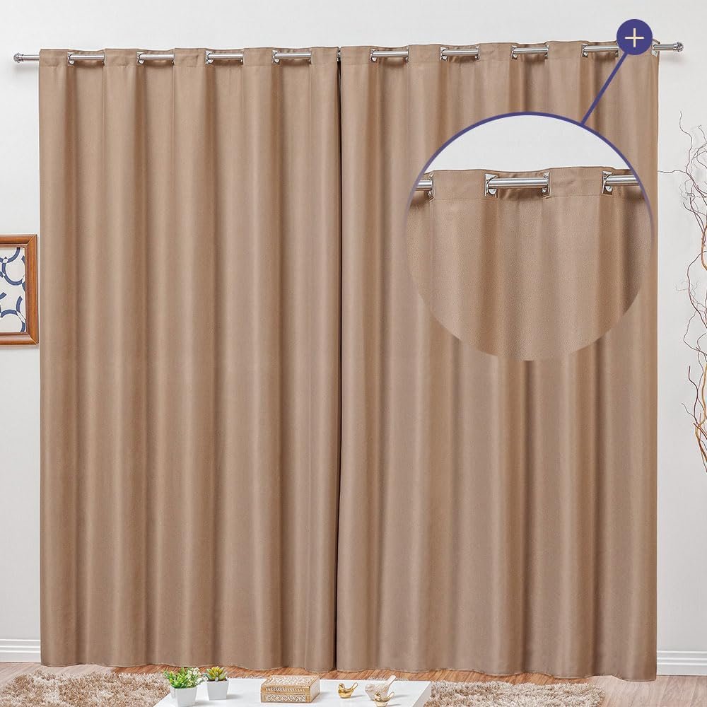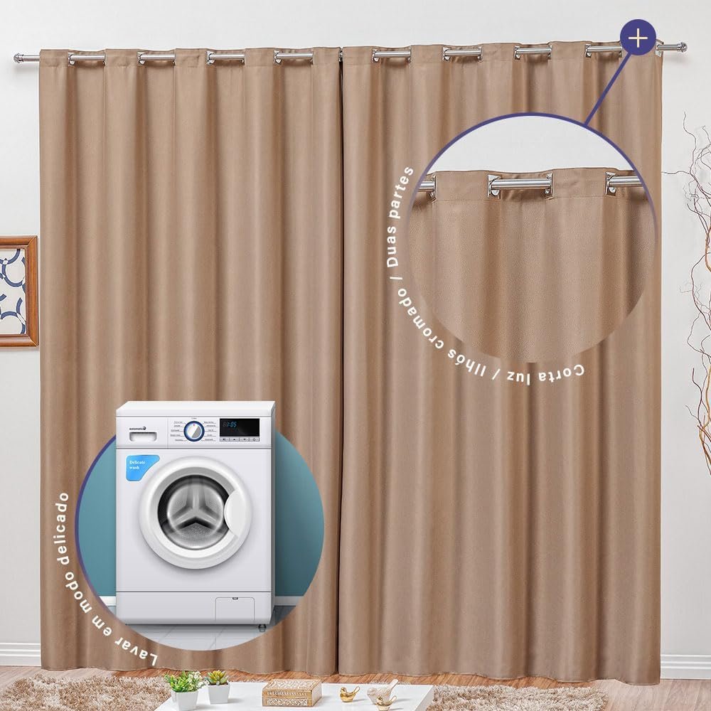 DESIGN PREMIUM: Cortina semi blackout com 2 folhas de 1,40m x 2,70m cada, fabricada em tecido 100% poliéster de alta qualidade com elegantes ilhoses cromados quadrados