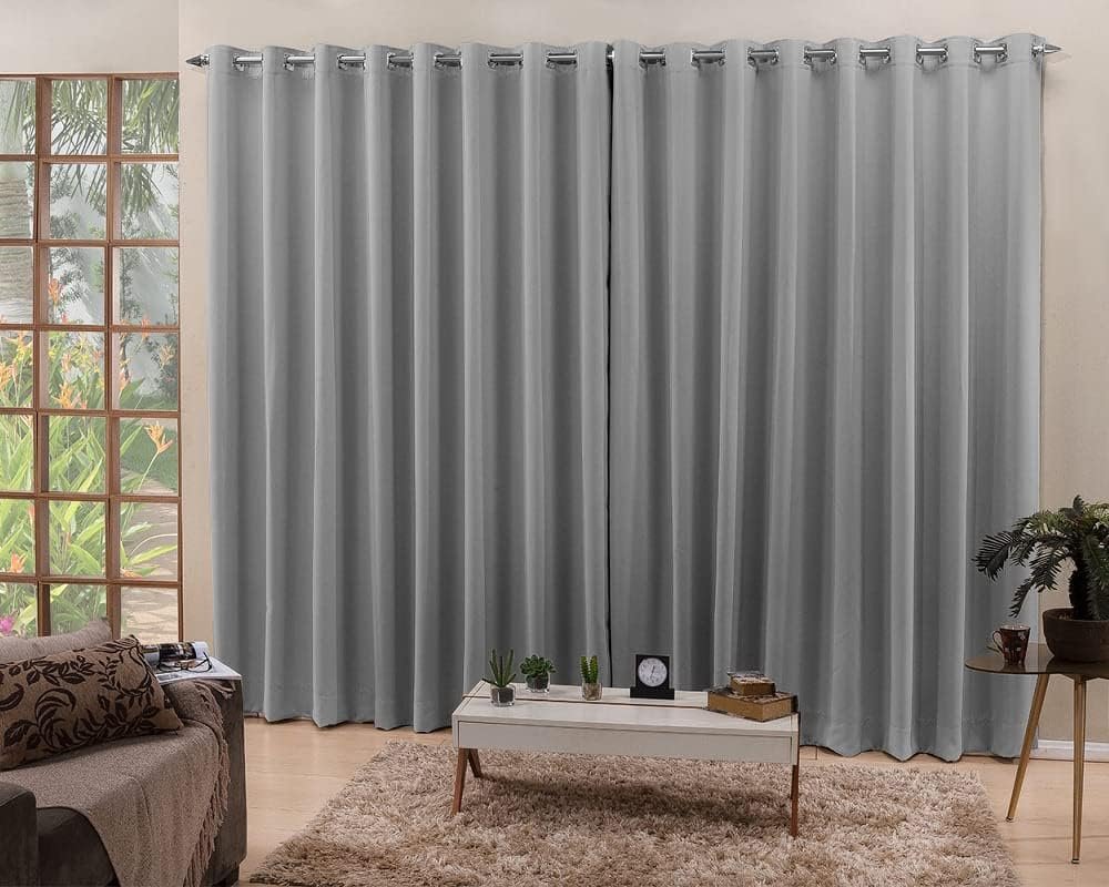 Cortina De Varão Cinza 4,00×2,50 Blackout Tecido