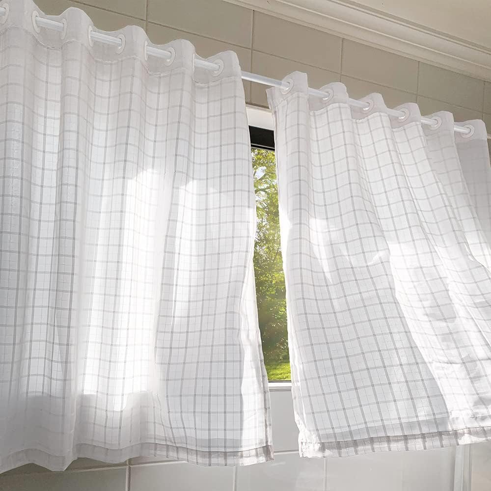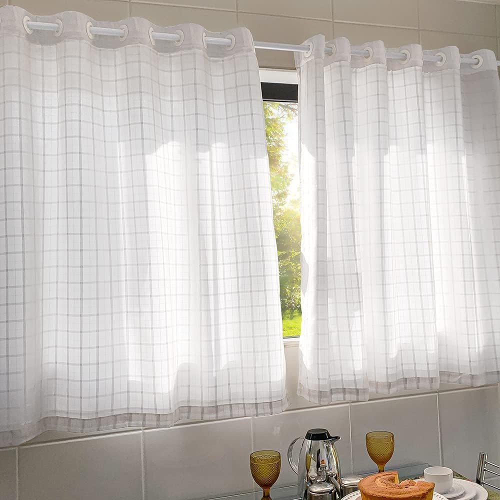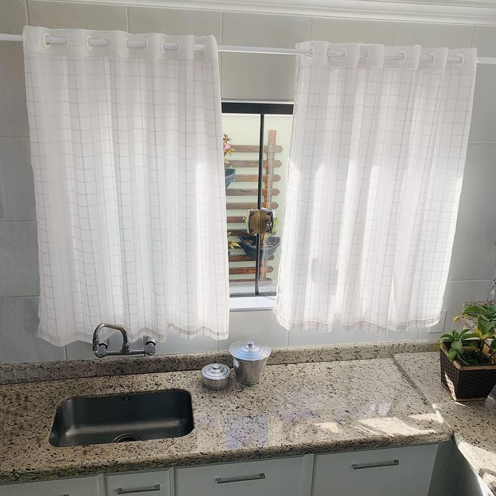 Voil quadriculado com forro de microfibra 100% poliéster, proporcionando charme e sofisticação.