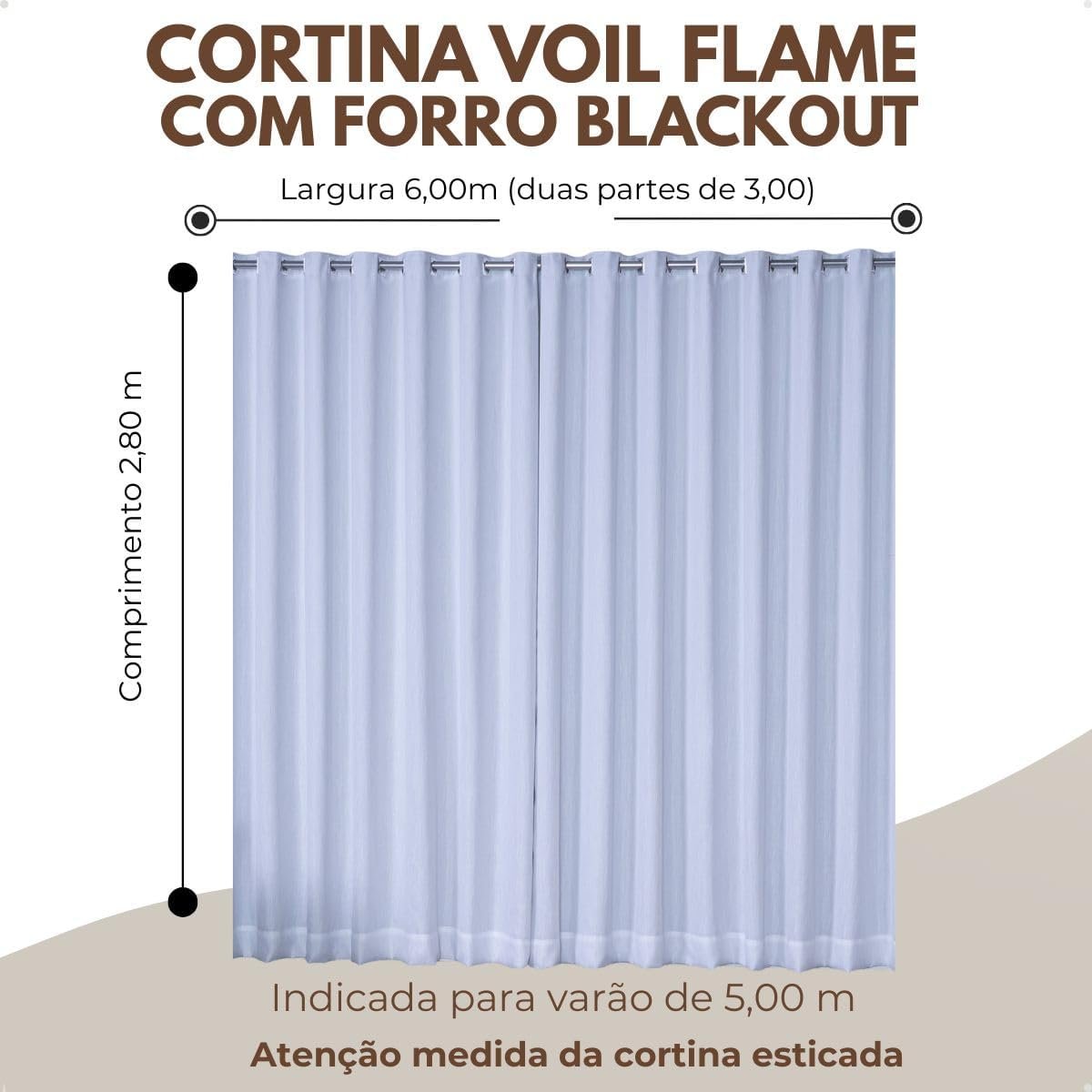 Cortina de Voil Flamê Premium Com Forro Blackout 6,00 x 2,80m Para Varão