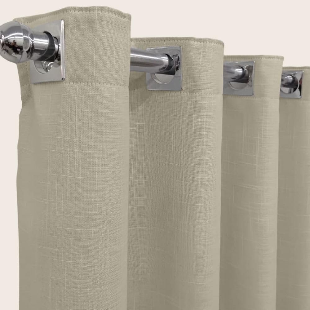Cortina Voil Gaze De Linho Palha 4,00×2,30 Forro Blackout Alto Padrão Linda Cortina Para Sala Ou Quarto Composta Por 2 Panos De 2,00m X 2,30m Voil Gaze de Linho Com Forro Em Blackout Tecido Ilhós Cromado. Acabamento Feito Na Bainha Ilhós Indicado Para Varão De 28mm Indicada Para Varão De Até 2,50m Composição: