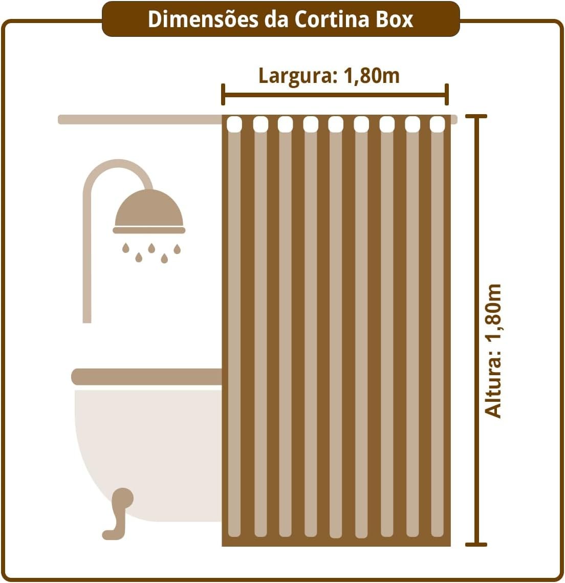 DIMENSÕES: Medidas de 180 x 180 centímetros, perfeitas para boxes de banheiro padrão, oferecendo ótima cobertura.