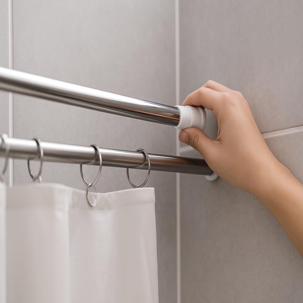 ✅Instalação Mágica e Sem Furos: Diga adeus à furadeira! Instale sua barra de cortina de banheiro por simples pressão/tensionamento, sem danificar paredes.