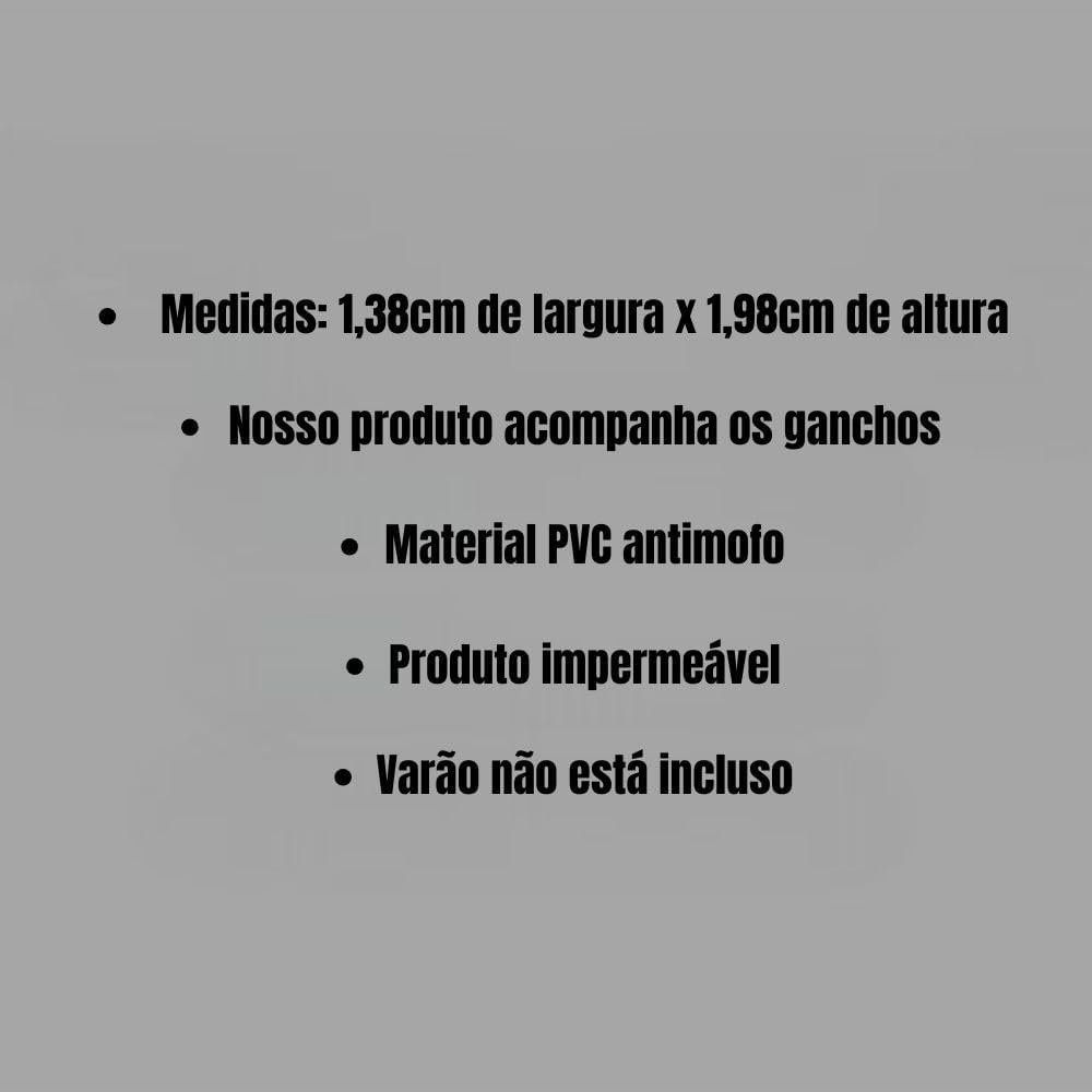 Cortina para box com visor e ganchos, ideal para garantir mais praticidade e conforto no seu dia a dia. Fabricada em PVC 100% resistente, impede que a água se espalhe pelo banheiro durante o banho, mantendo o ambiente seco e organizado. Possui visor transparente que proporciona mais luminosidade, é fácil de limpar, possui tratamento antimofo e está disponível em diversas cores para combinar com a sua decoração. Medindo 1,38 x 1,98 cm, acompanha ganchos para instalação e não inclui varão.