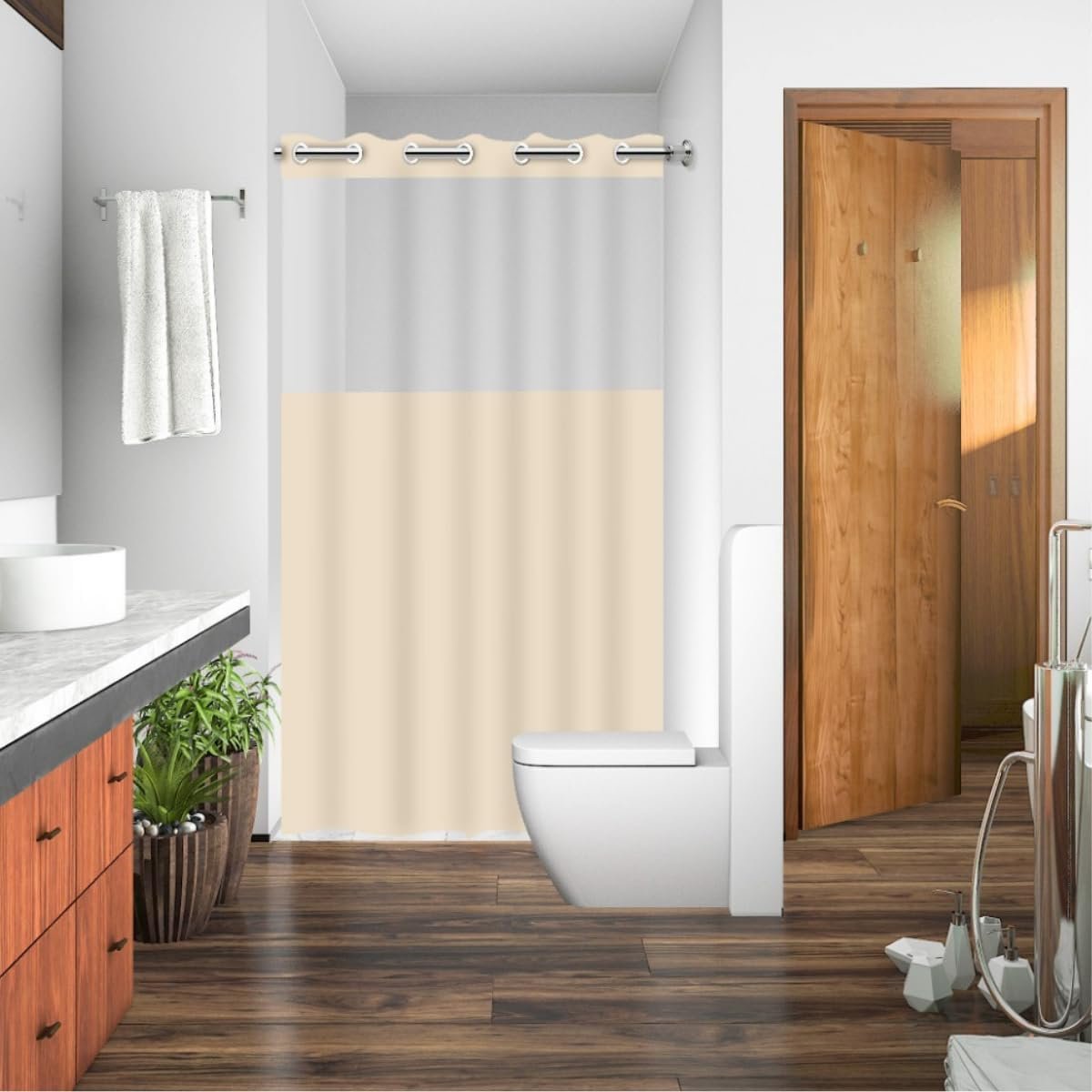 Fabricada em PVC resistente e impermeável, esta cortina é extremamente durável e fácil de limpar.