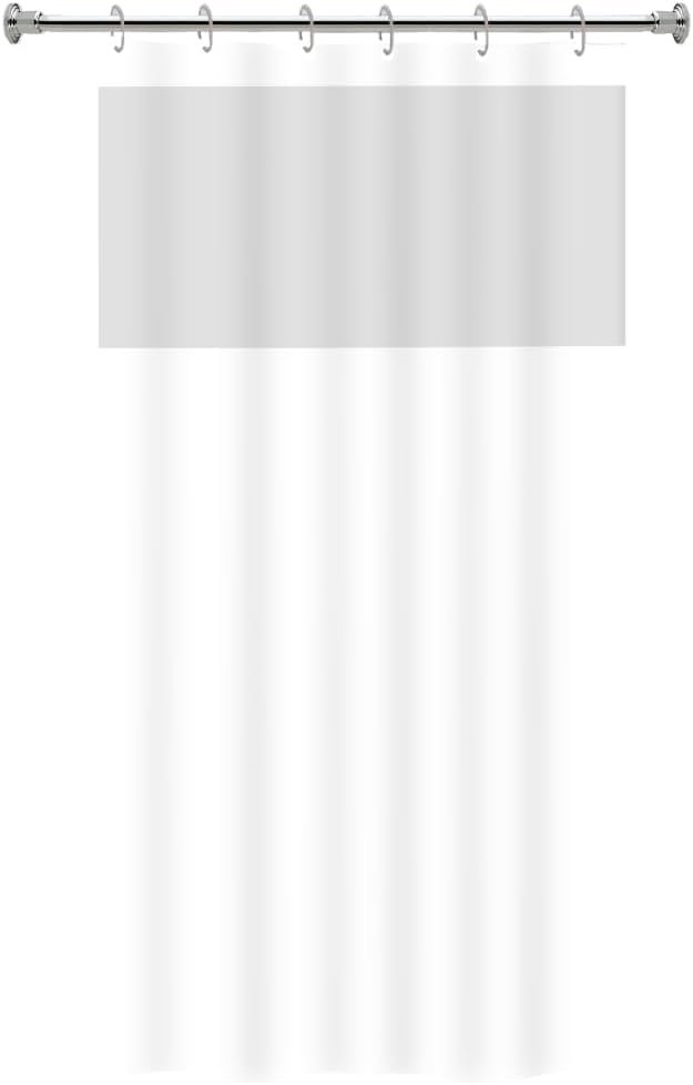 DESIGN MODERNO: Cortina de banheiro com visor transparente na parte superior e parte inferior em cor sólida, criando um visual elegante e contemporâneo