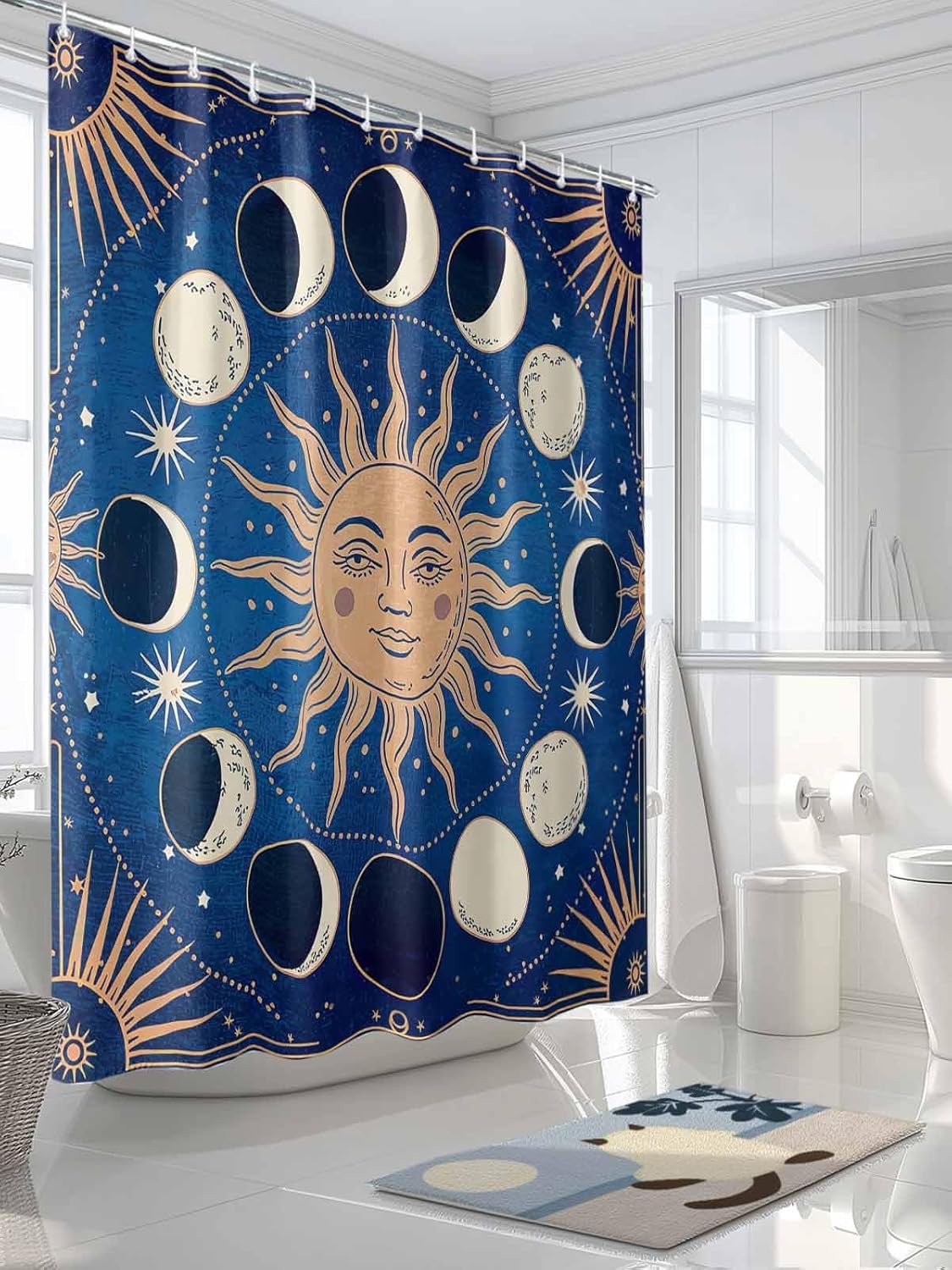 Tamanho clássico: a cortina de chuveiro decorativa do banheiro mede o tamanho 152 x 183 cm, com ilhós na parte superior e anéis de cortina de plástico branco gratuitos. Use tratamento à prova d’água. Certifique-se de que as contas de água sejam mantidas dentro das banheiras.
