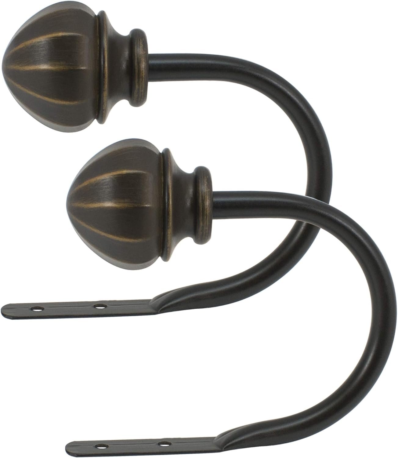 Suportes decorativos (conjunto de 2) podem ser usados para amarrar cortinas ou como ganchos de cachecol. Acabamento em bronze rico. Combina com conjuntos de hastes decorativas de 1,5 cm. Ferragens de montagem incluídas.