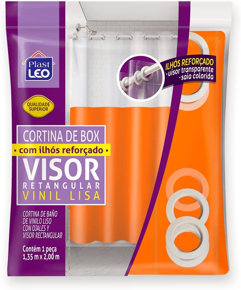 Ótima opção para decorar sem necessidade de grandes intervenções! A Cortina para Box com Visor, da Plast Leo, é uma solução prática, funcional que decora e evita respingos de água no seu banheiro na hora do banho. Possui ilhós reforçado, não necessitando de ganchos, facilitando a colocação no varão. Visor transparente e parte inferior laranja liso.