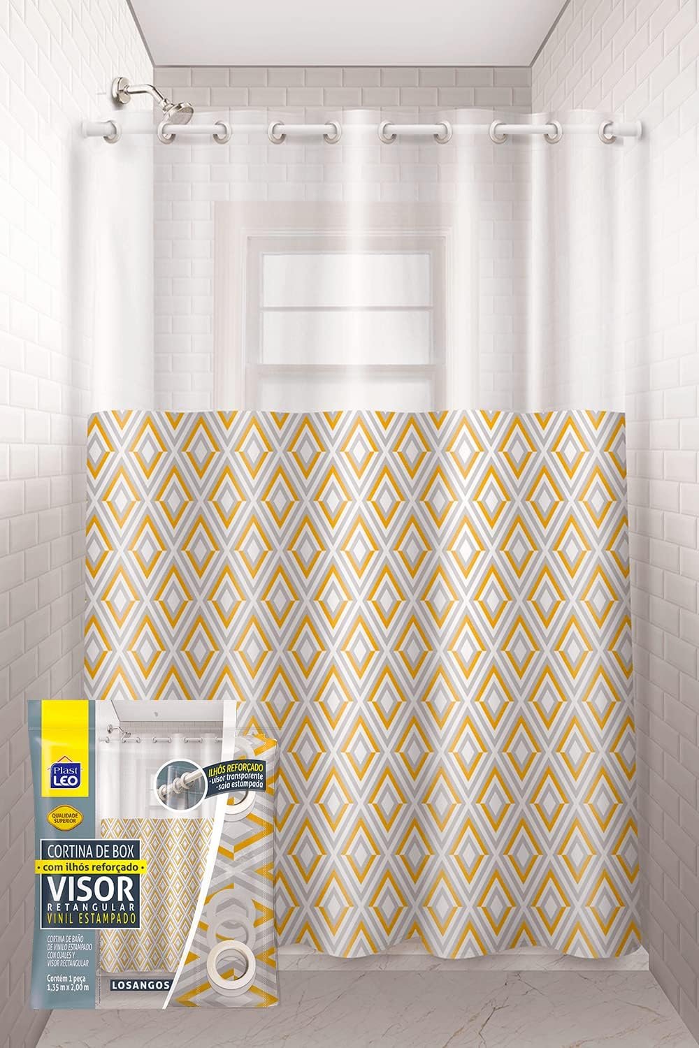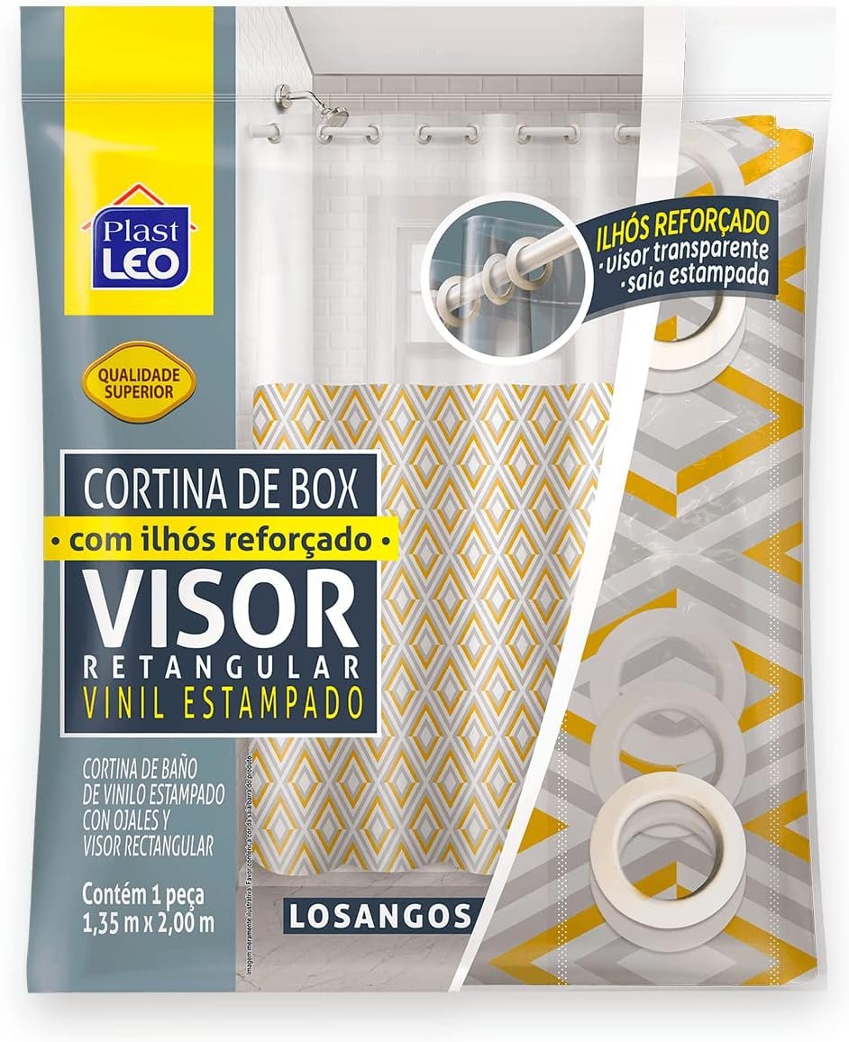 Ótima opção para decorar sem necessidade de grandes intervenções! A Cortina para Box com Visor, da Plast Leo, é uma solução prática, funcional que decora e evita respingos de água no seu banheiro na hora do banho. Possui ilhós reforçado, não necessitando de ganchos, facilitando a colocação no varão. Visor transparente e parte inferior estampa de Losangos.