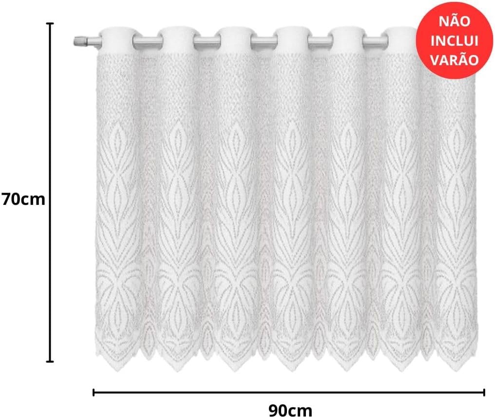 Cortina Para Vitrô de Banheiro Renda Branca Grossa 90 X 70cm Dê um toque de romantismo e beleza em seu banheiro, com essa maravilhosa cortina de renda, linda e prática, que vai tornar seu dia a dia muito mais agradável, alem de deixar sua casa mais linda. É confeccionada com um material sintético que garante uma maior durabilidade e praticidade. Com um excelente acabamento e design sofisticado, para tornar seu ambiente ainda mais bonito e relaxante. Com ótimo acabamento, beleza e bom gosto. Material: 100% Poliéster Dimensões: 70 cm de Altura x 90 cm de Comprimento As fotos do anúncio são meramente ilustrativas, pois os desenhos das rendas mudam de acordo com cada lote fabricado.