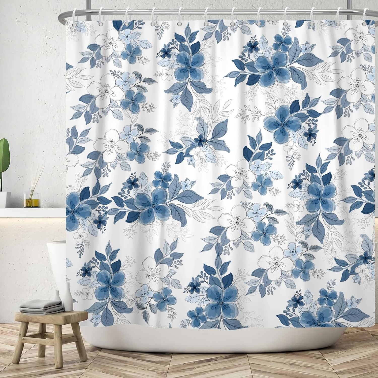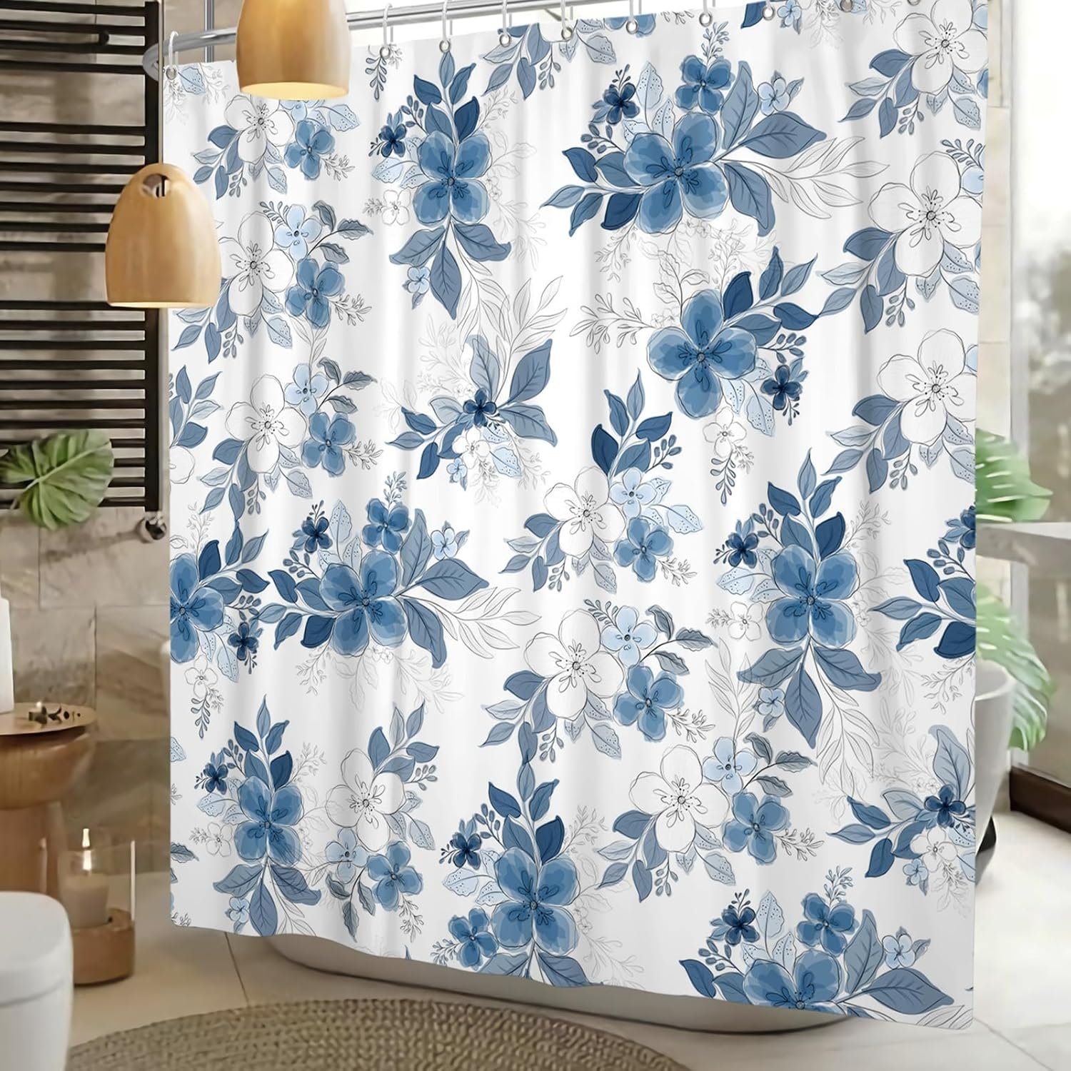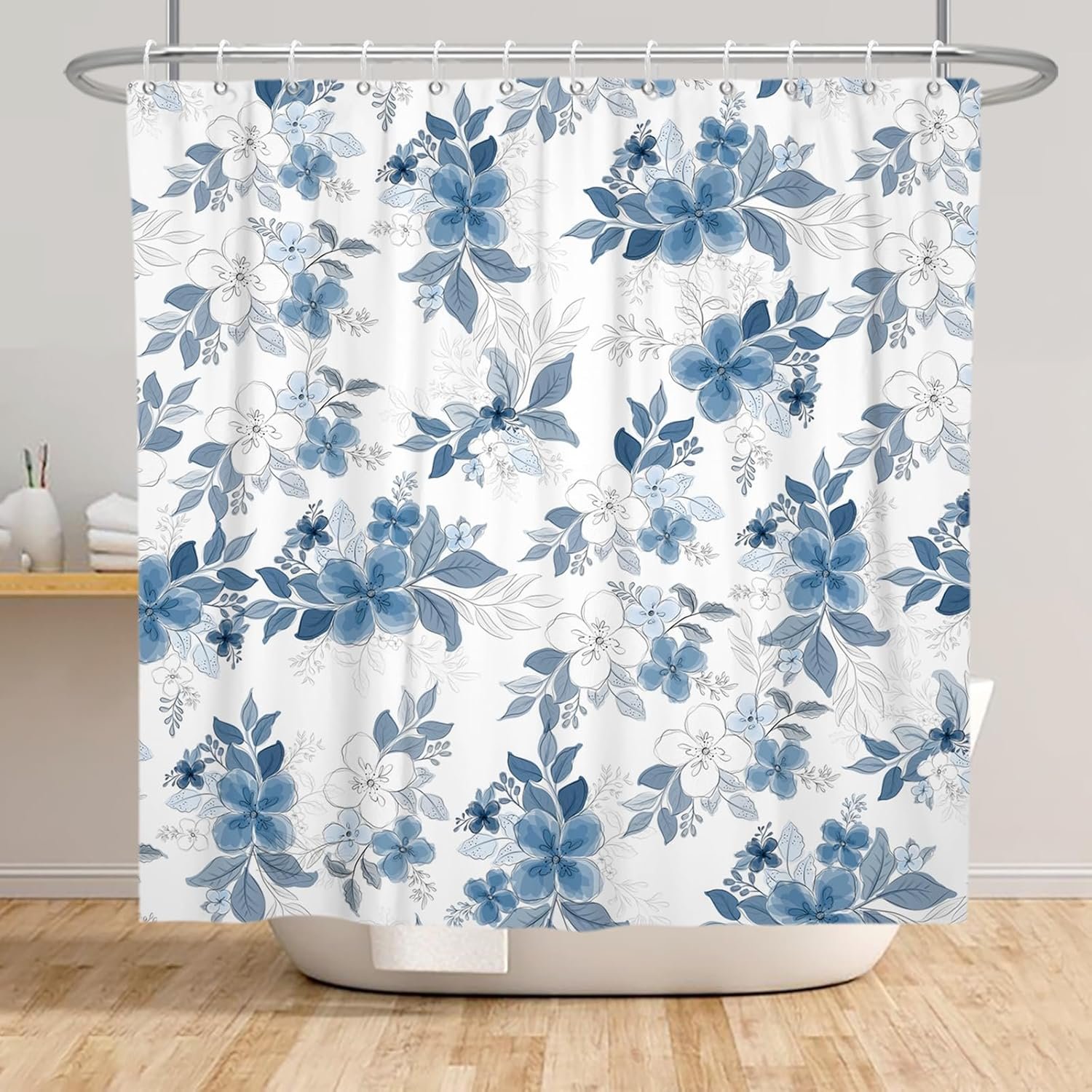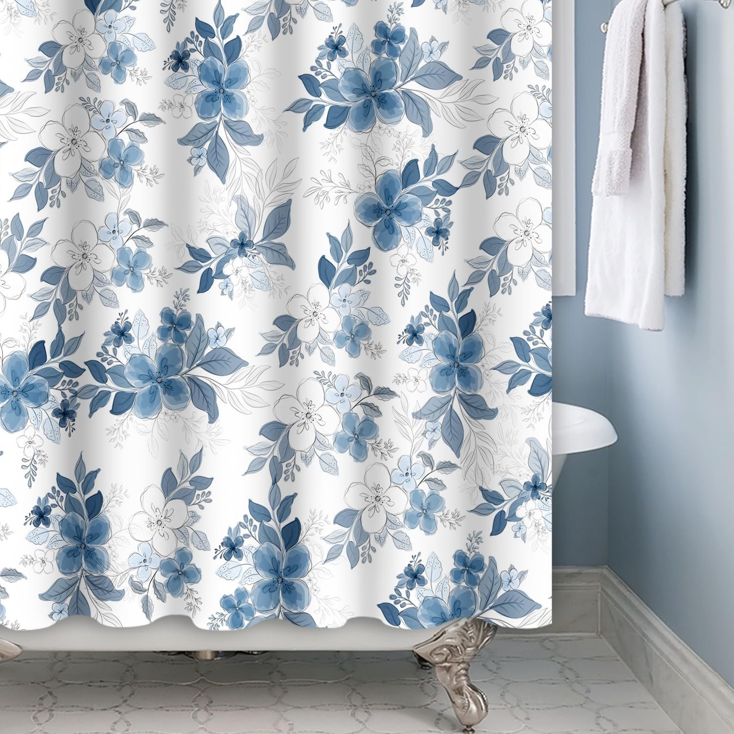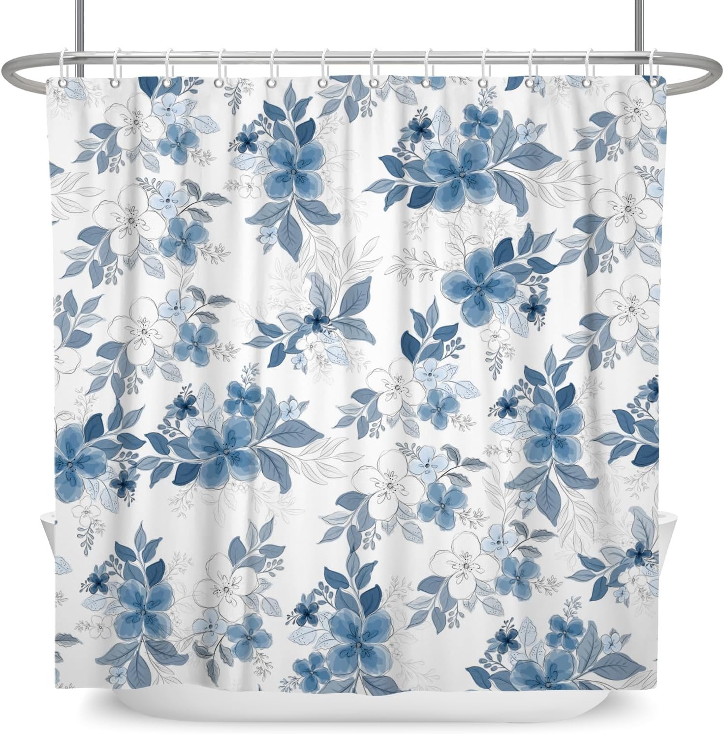 Cortinas de chuveiro florais azuis para banheiro cortina de chuveiro floral azul e branca de verão aquarela para banheiro moderna tinta abstrata cortina de banheira decorativa