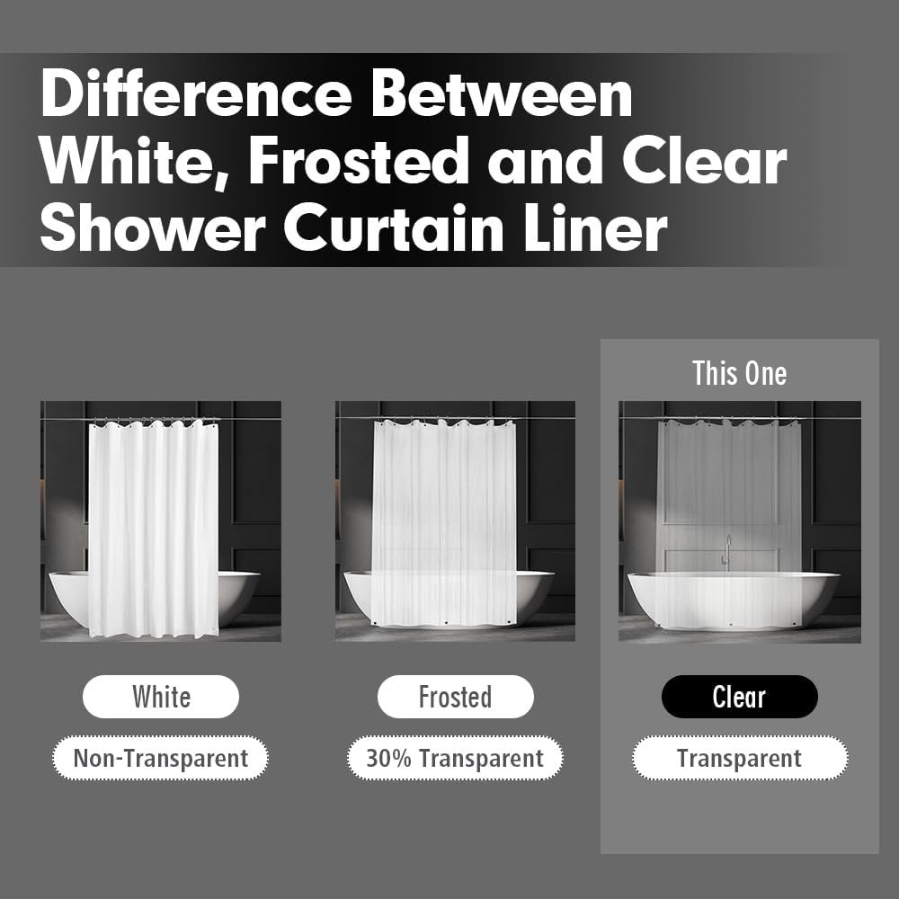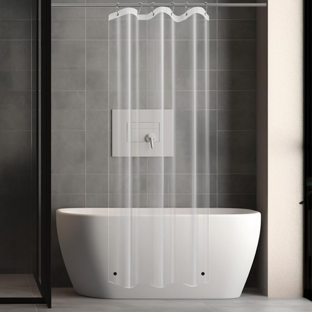 (Boa qualidade) – Feito de material EVA de alta qualidade de calibre 3,2. Este forro de cortina de chuveiro é fino (leve), mas forte, sem cheiros de plástico.