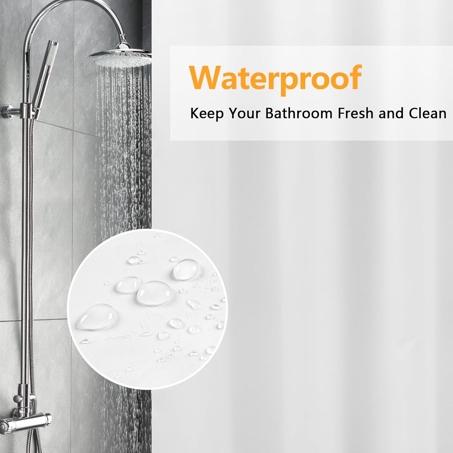 Esta cortina de chuveiro de tecido à prova d’água pode ser usada como uma cortina de chuveiro independente ou como um forro de chuveiro interno para proteger a cortina externa de sujeira e umidade. Perfeito para qualquer banheiro ou banheira em casas, apartamentos, dormitórios, hotéis, academias e escritórios.