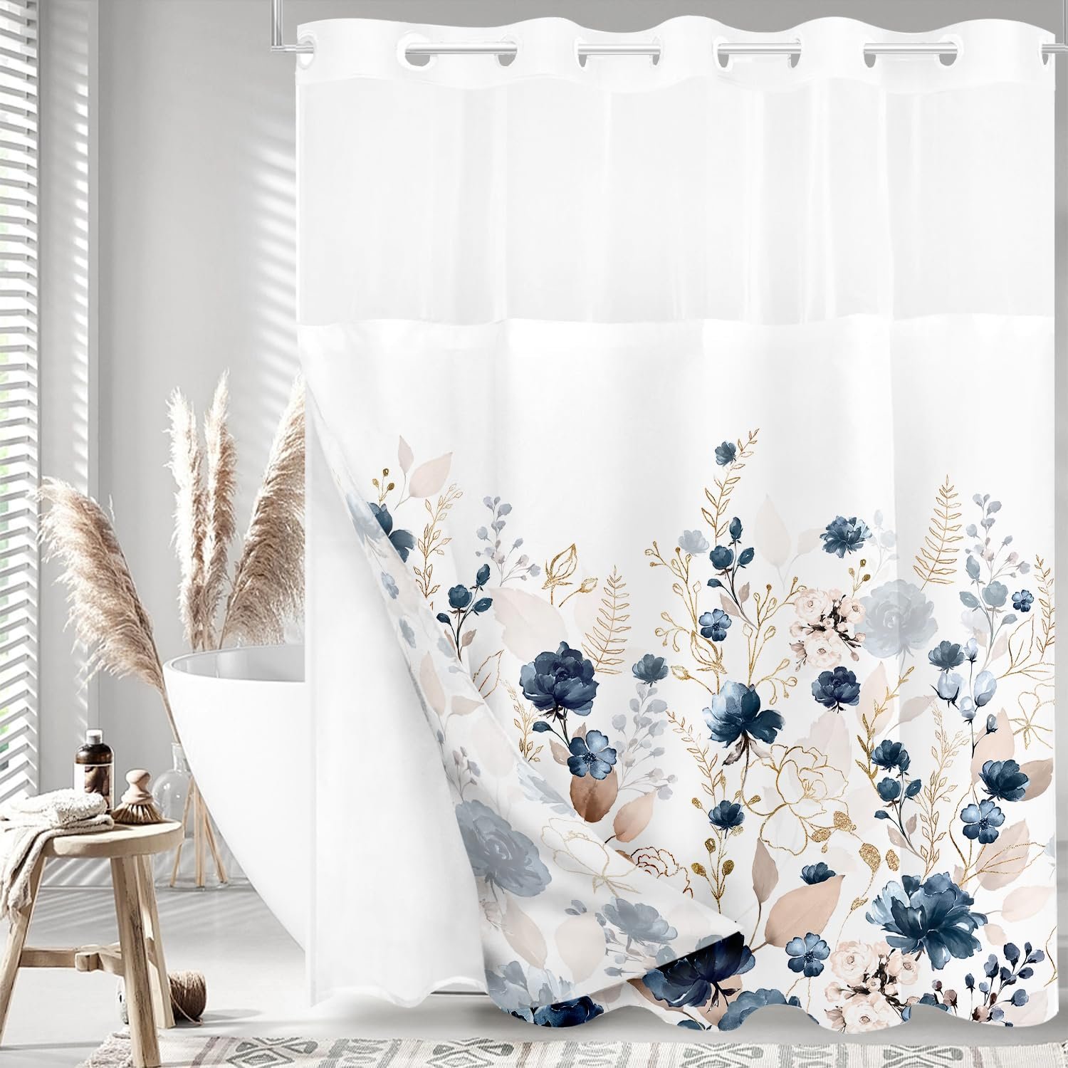 ❄x:li x:li – Não é necessário ganchos! O design sem gancho com os anéis romanos grandes divididos facilita pendurar a cortina do chuveiro.