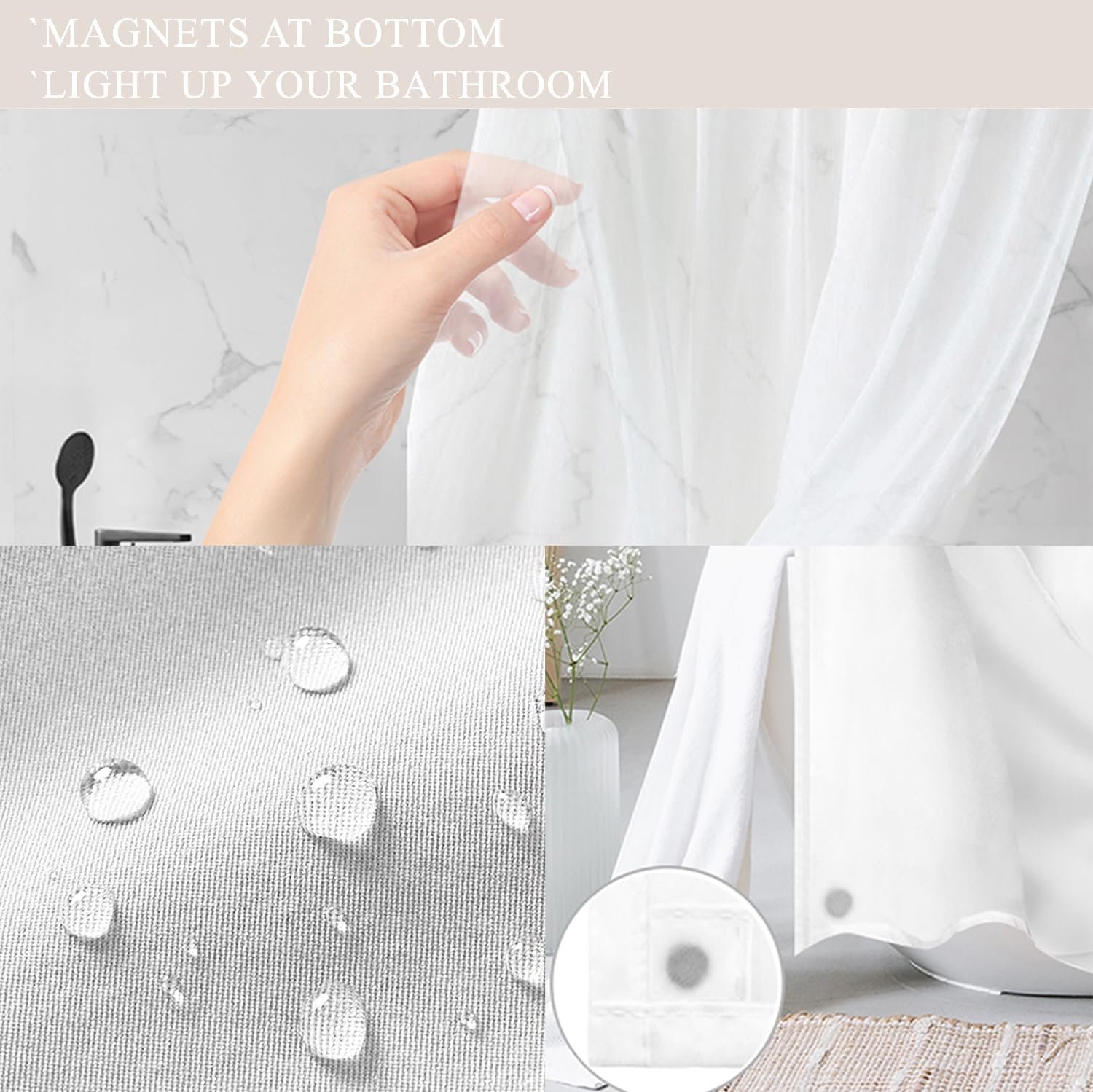 ❄ – Feito de tecido de poliéster pesado habilmente escolhido e completamente testado, que é feito para suportar ambientes de banheiro ricos em umidade