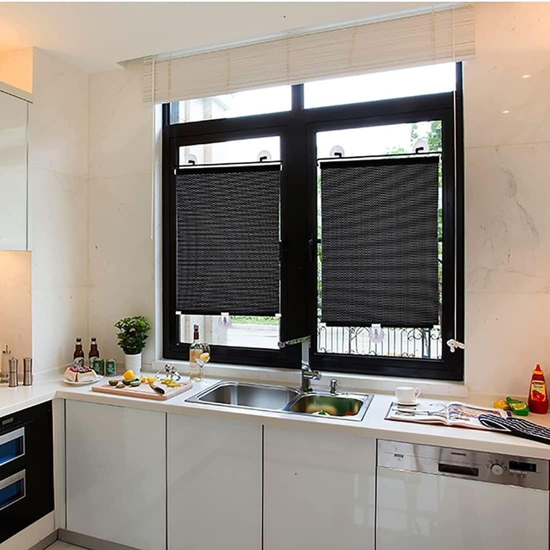 Ampla gama de aplicações: Esta cortina pode ser usada em janelas de carros, quartos, escritórios, cozinhas, banheiros e outras superfícies de vidro ou lisas. Pode ser instalado onde houver necessidade de ser protegido do sol.