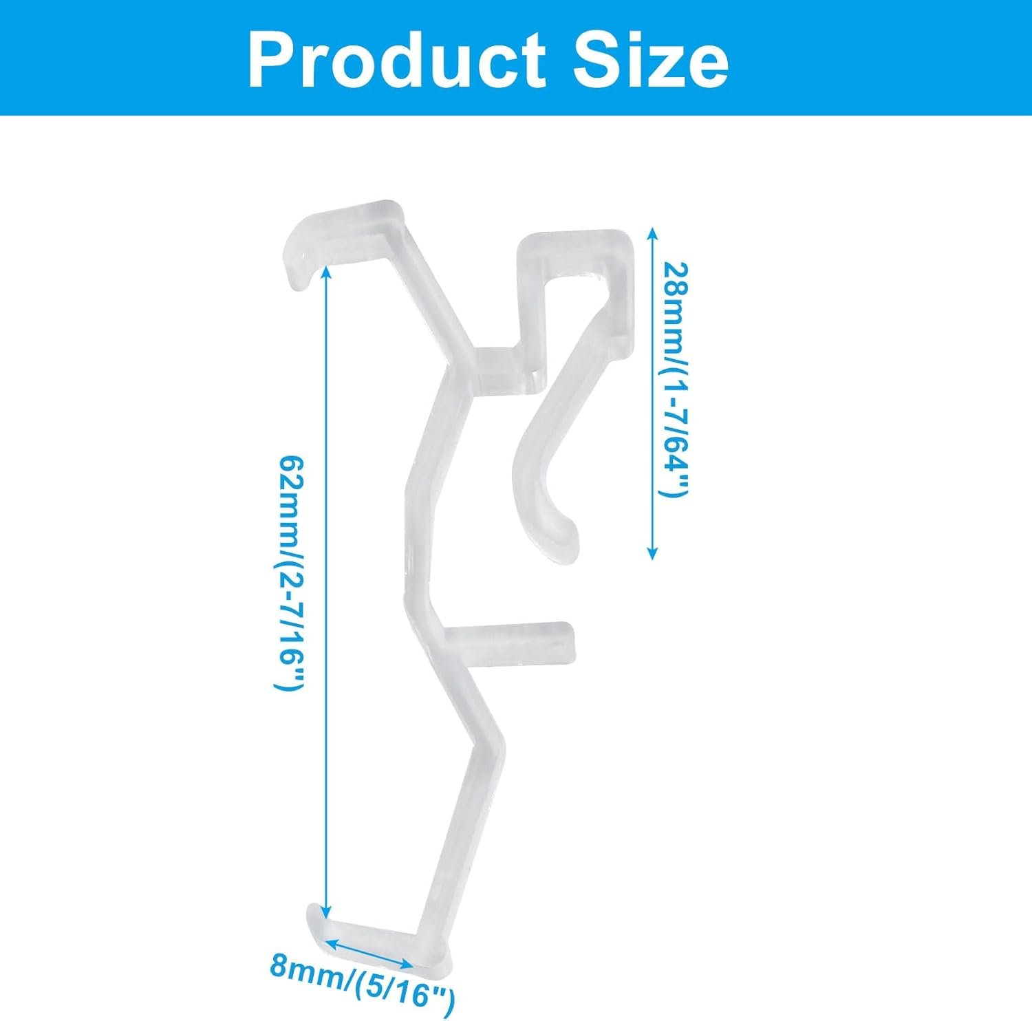 Fácil de usar: Estes clipes de sanefa transparentes são fáceis de instalar e usar, com um design simples e intuitivo para instalação ou desmontagem sem esforço.