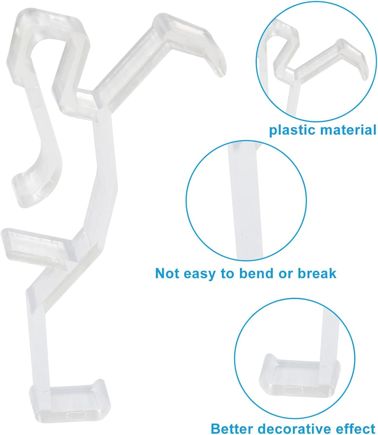 Materiais de alta qualidade: nossos clipes de cortina transparentes são feitos de plástico durável e confiável, garantindo longevidade, afrouxamento mínimo e garantindo desempenho e estabilidade a longo prazo.