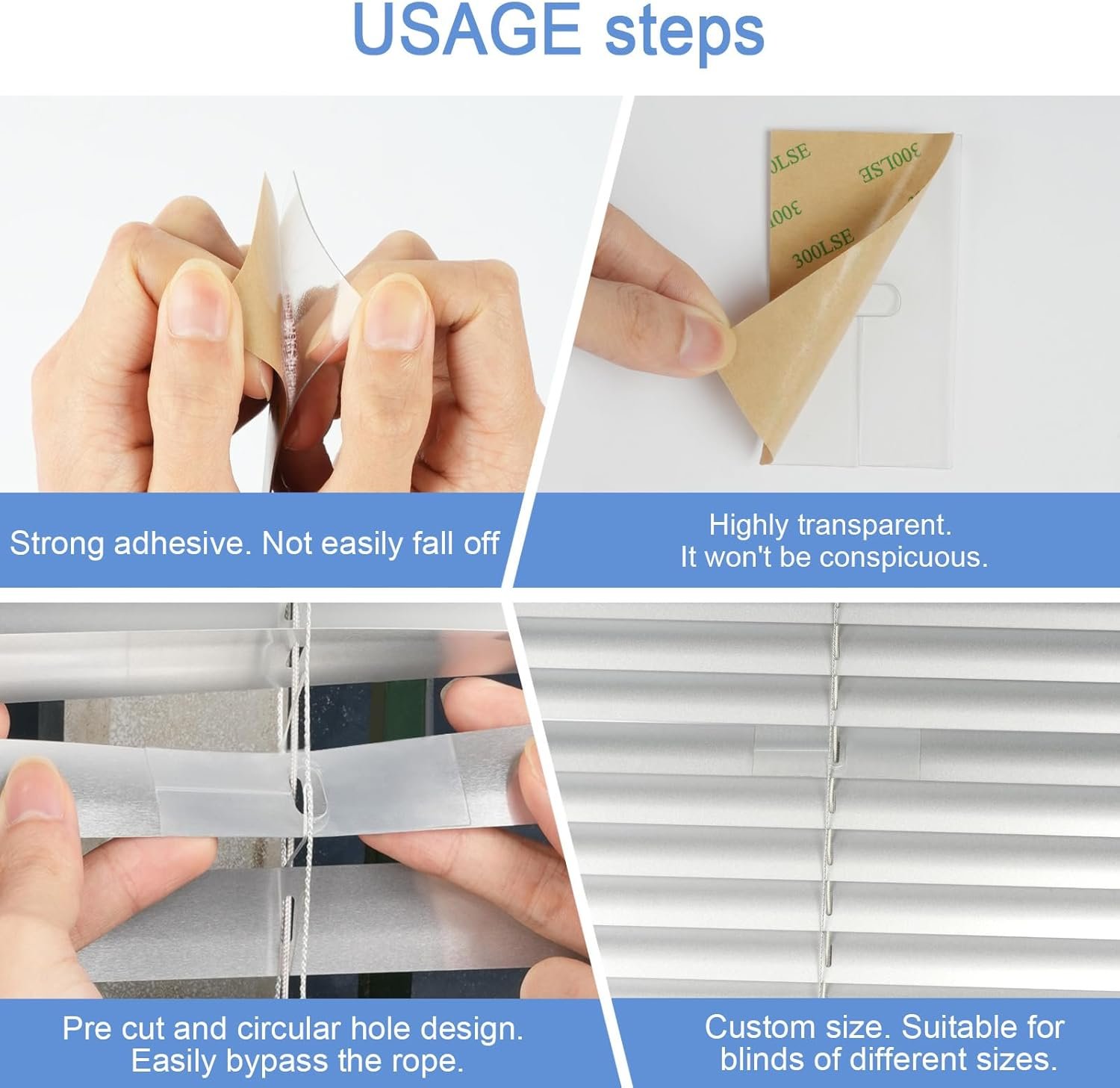 Forte aderência e durabilidade: feitas de PVC de alta qualidade com forte adesivo, elas oferecem um ajuste seguro, resistência ao desgaste e reparo de longa duração para persianas horizontais e verticais, eliminando a preocupação de desprendimento frequente.