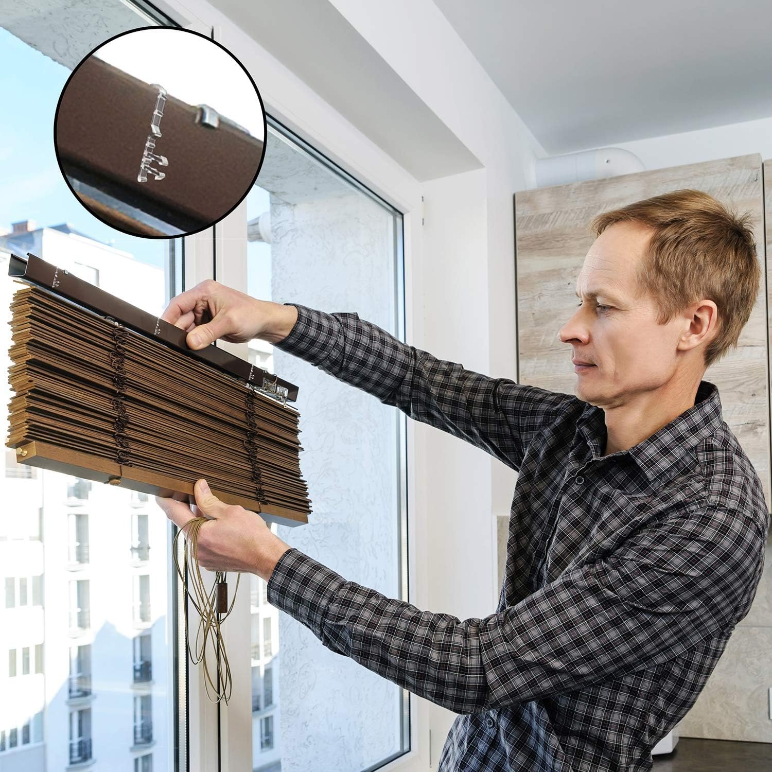 Estes clipes transparentes são quase imperceptíveis depois de instalados, permitindo que suas persianas retornem à aparência original.