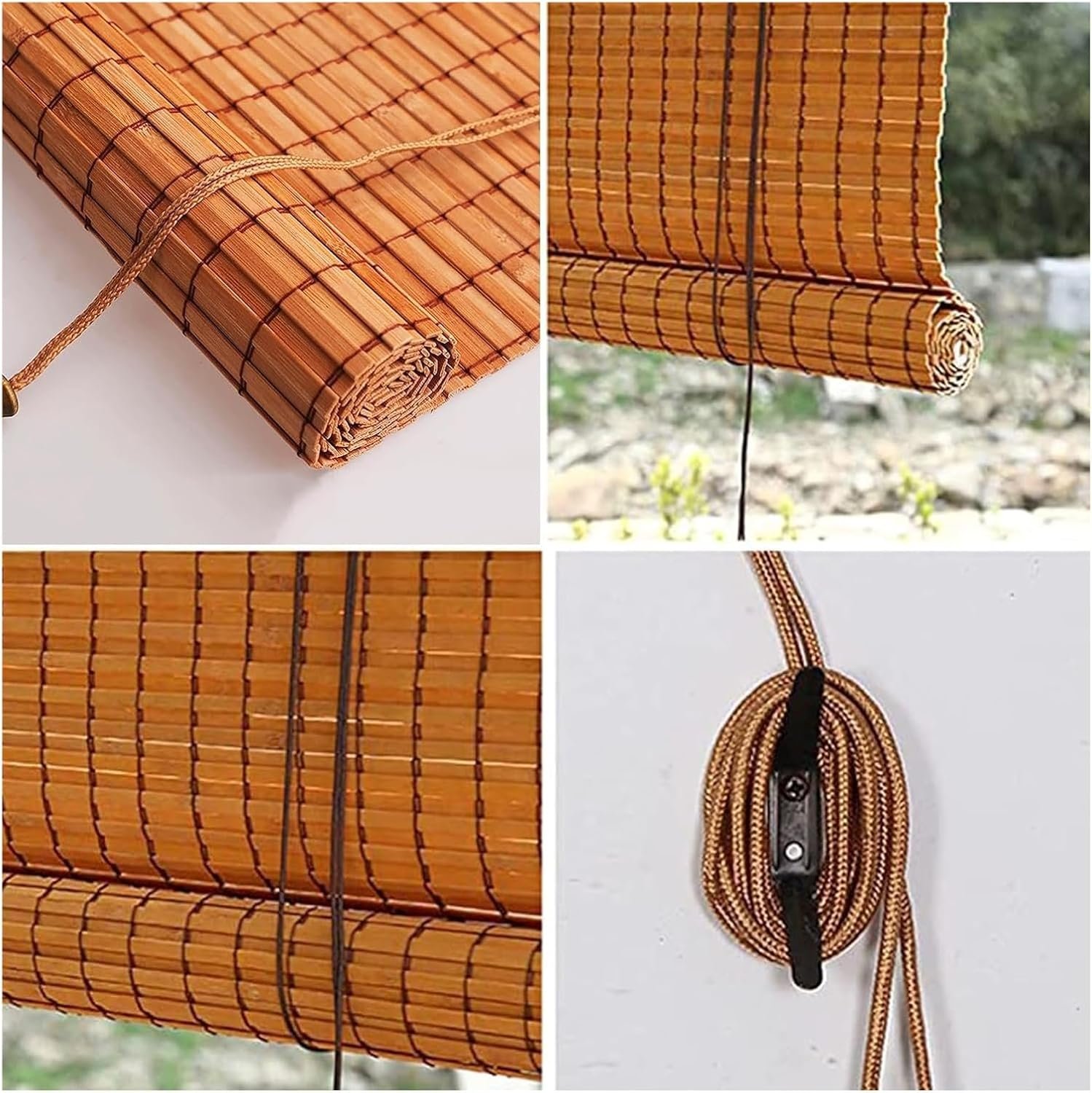 Fácil de instalar: Nossas persianas são adequadas para instalação interna e externa. e inclui as ferragens necessárias. Você pode facilmente instalar persianas de bambu fazendo furos. Basta fixar os ganchos para prender as persianas de bambu. Quando em uso, a altura da cortina pode ser controlada através do cordão lateral para ajustar o brilho.