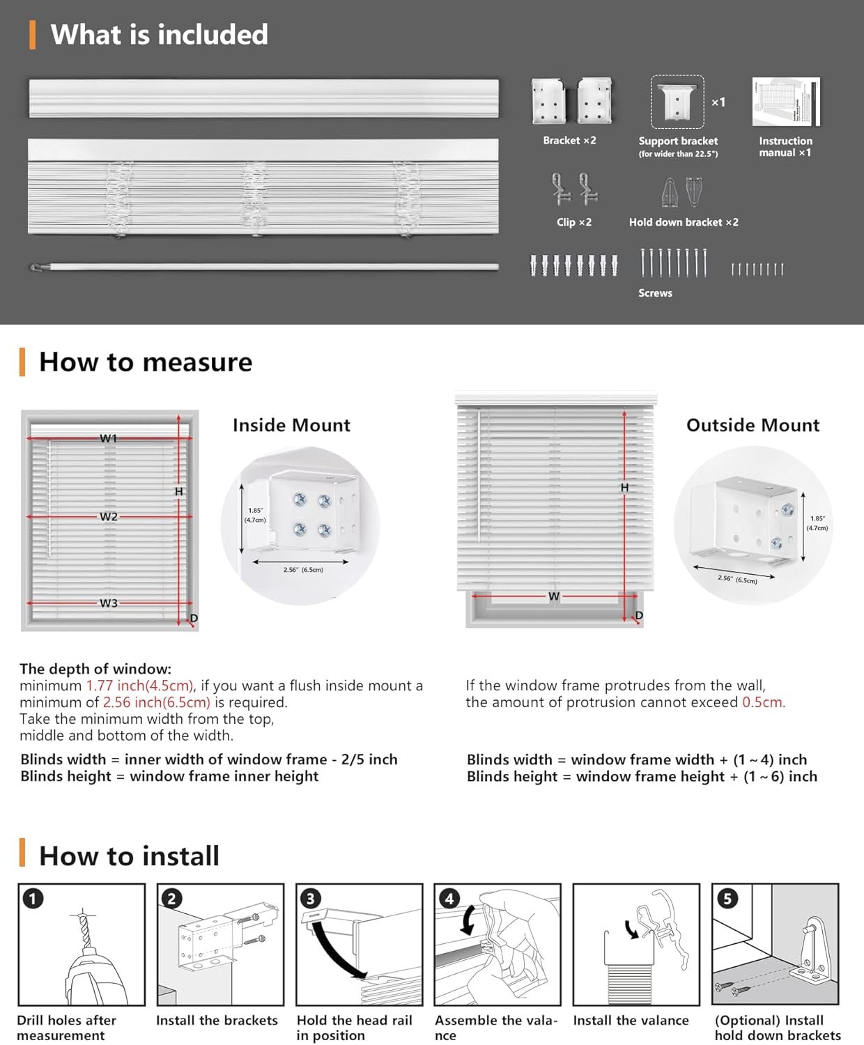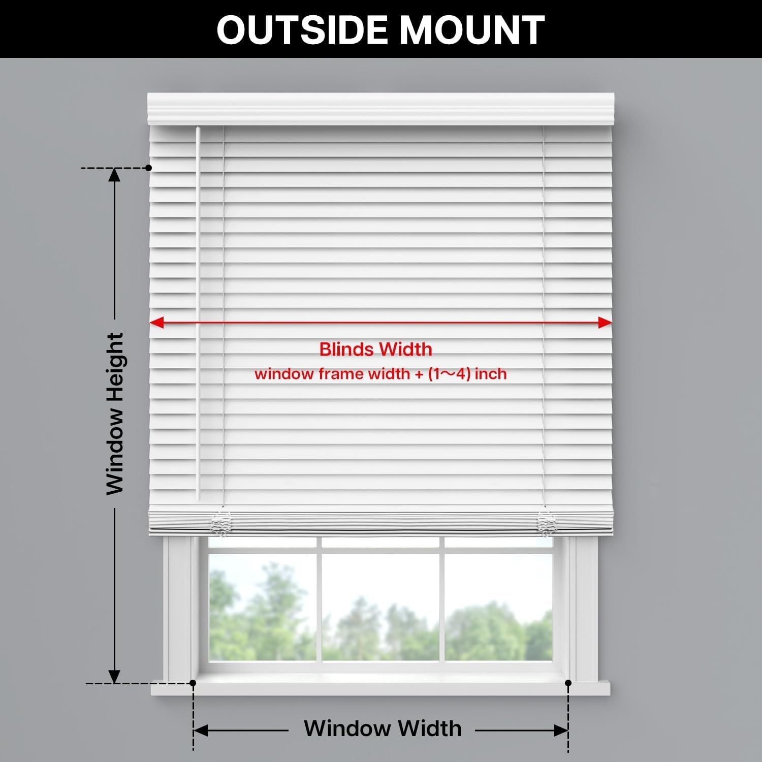 Persianas de madeira falsa para janelas: o tamanho real das persianas é de 89,5 cm de largura, o suporte de montagem adiciona 9,5 cm para uma montagem interna. Portanto, certifique-se de que a largura da janela seja de pelo menos 90,5 cm ou maior para uma montagem interna.