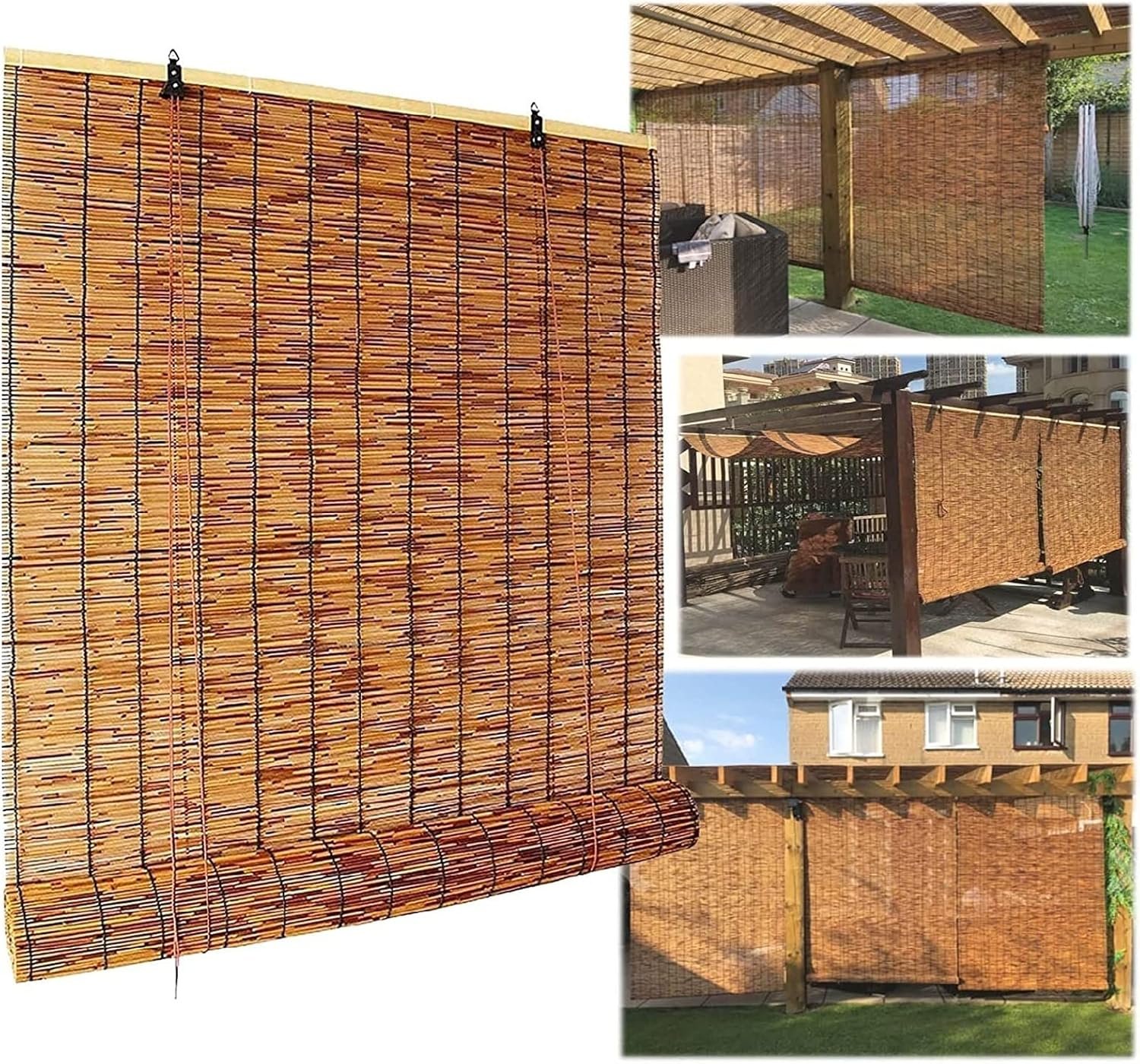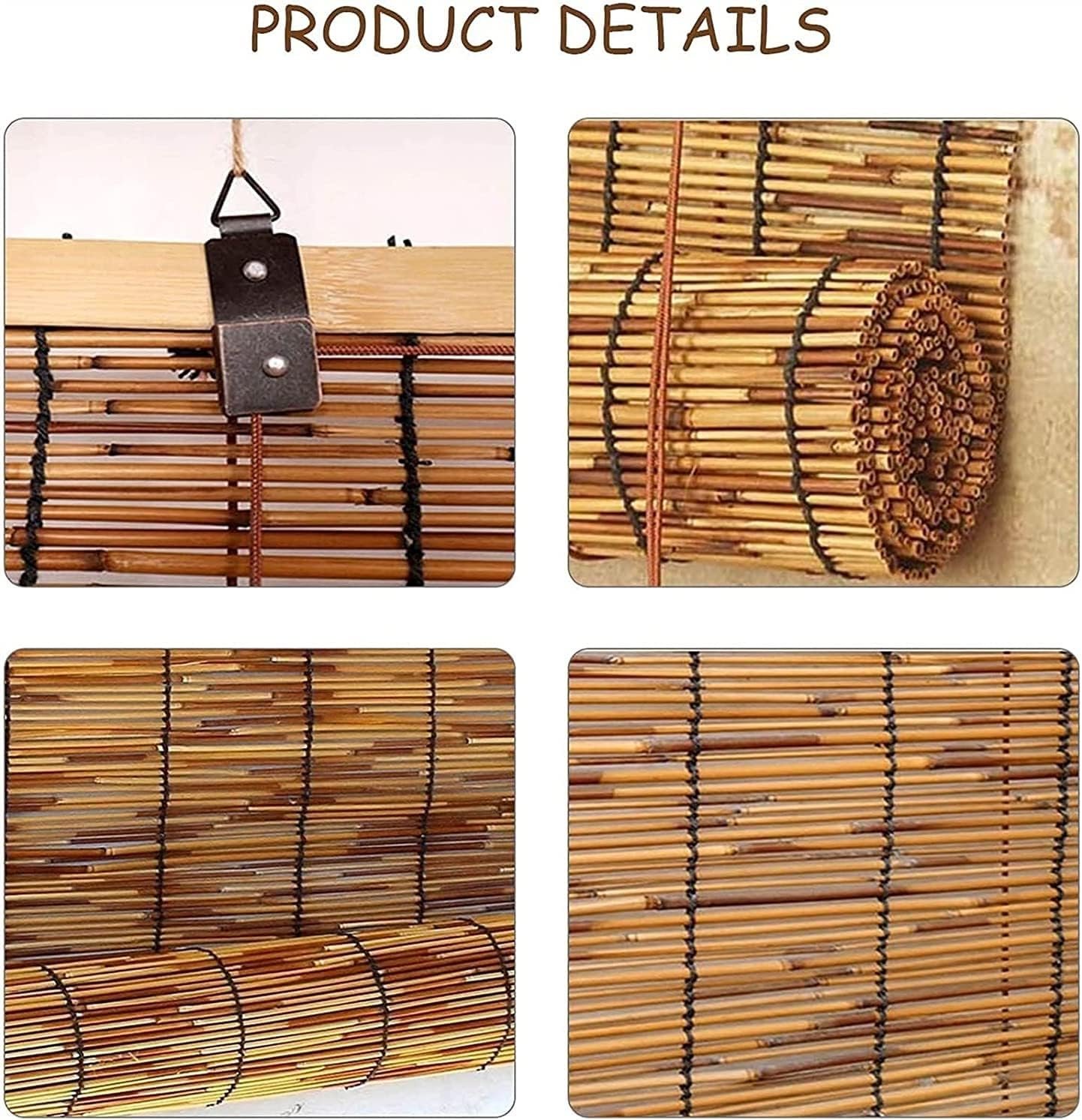 ★ Observação: a cortina de palheta é feita de palhetas naturais. A textura é leve. Se você estiver usando ao ar livre e tiver tempo ventoso, não a desdobre e deixe enrolada.