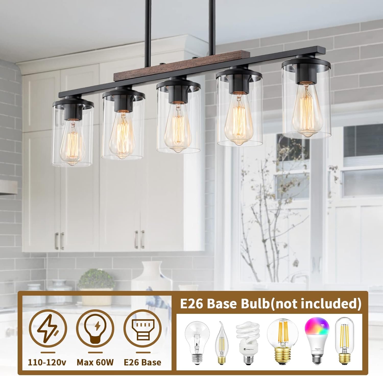 (Iluminação de ilha de cozinha de fazenda muito mais brilhante e regulável) Projetado com 5 soquetes E26 (máx. 60 W por lâmpada, lâmpadas não incluídas), esta luminária pendente de fazenda para cozinha é compatível com lâmpadas LED, incandescentes, CFL e Edison. A luminária sobre a mesa é regulável. Ajuste facilmente os níveis de brilho com um interruptor regulável e lâmpadas para criar o ambiente de fazenda para qualquer ocasião