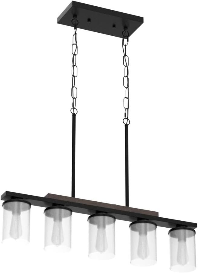 (Altura ajustável para qualquer espaço) Com hastes de 30 cm e uma corrente ajustável de 50 cm, luminárias pretas rústicas para sala de jantar com 5 luzes sobre a mesa de madeira da fazenda permitem que você personalize a altura de suspensão de até 108 cm. As luminárias de ilha de cozinha são adequadas para tetos padrão, altos ou inclinados, o lustre Alynzee preto e de madeira é adequado para salas de jantar, ilhas de cozinha, restaurantes e muito mais