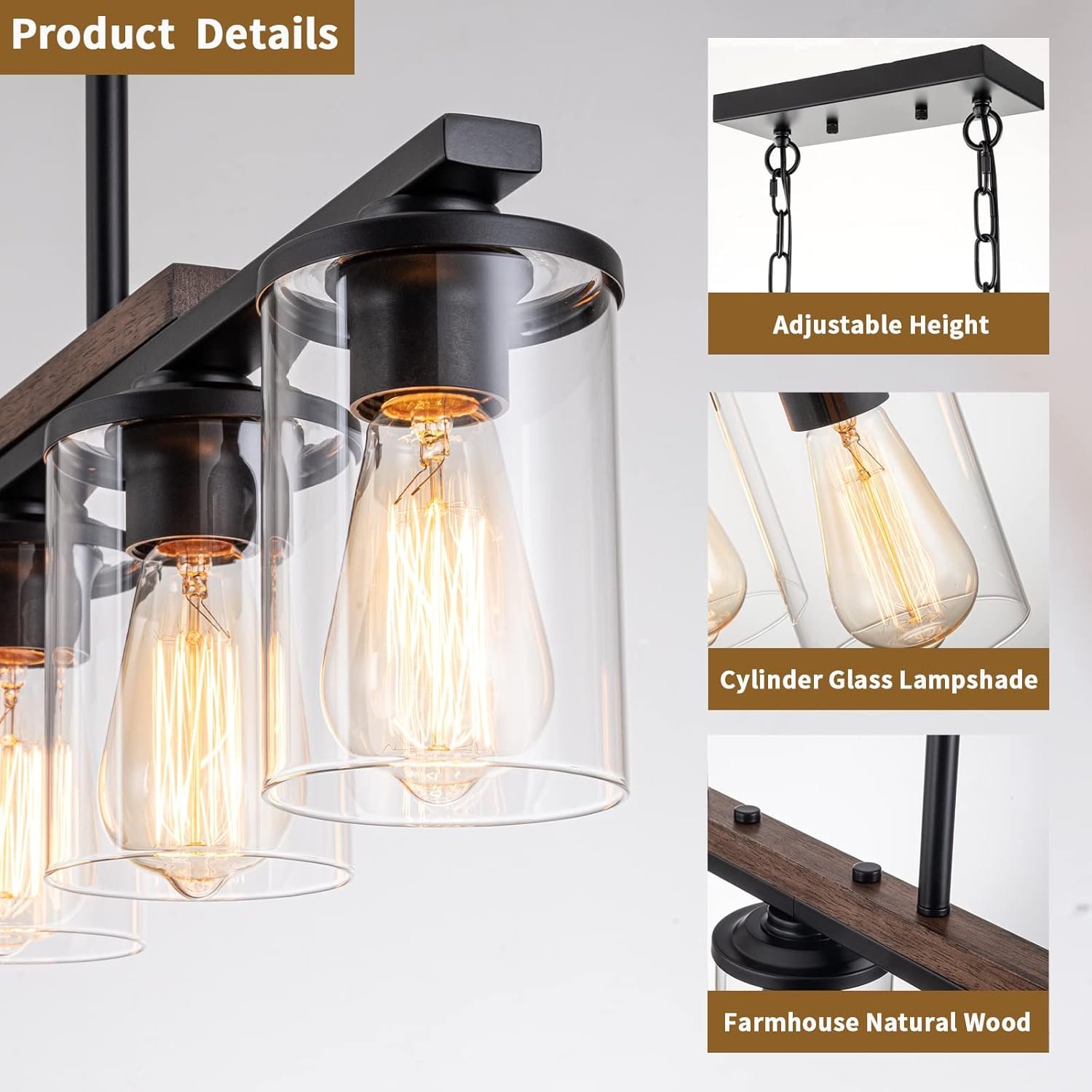 (Instalação fácil e rápida) A casa de fazenda com luz de sala de jantar vem com todas as ferragens de montagem e instruções claras para uma configuração sem complicações. O design de cortina de vidro aberto permite trocas rápidas de lâmpada e limpeza fácil, tornando o lustre da sala de jantar sobre a mesa uma solução de iluminação conveniente e elegante para o seu espaço