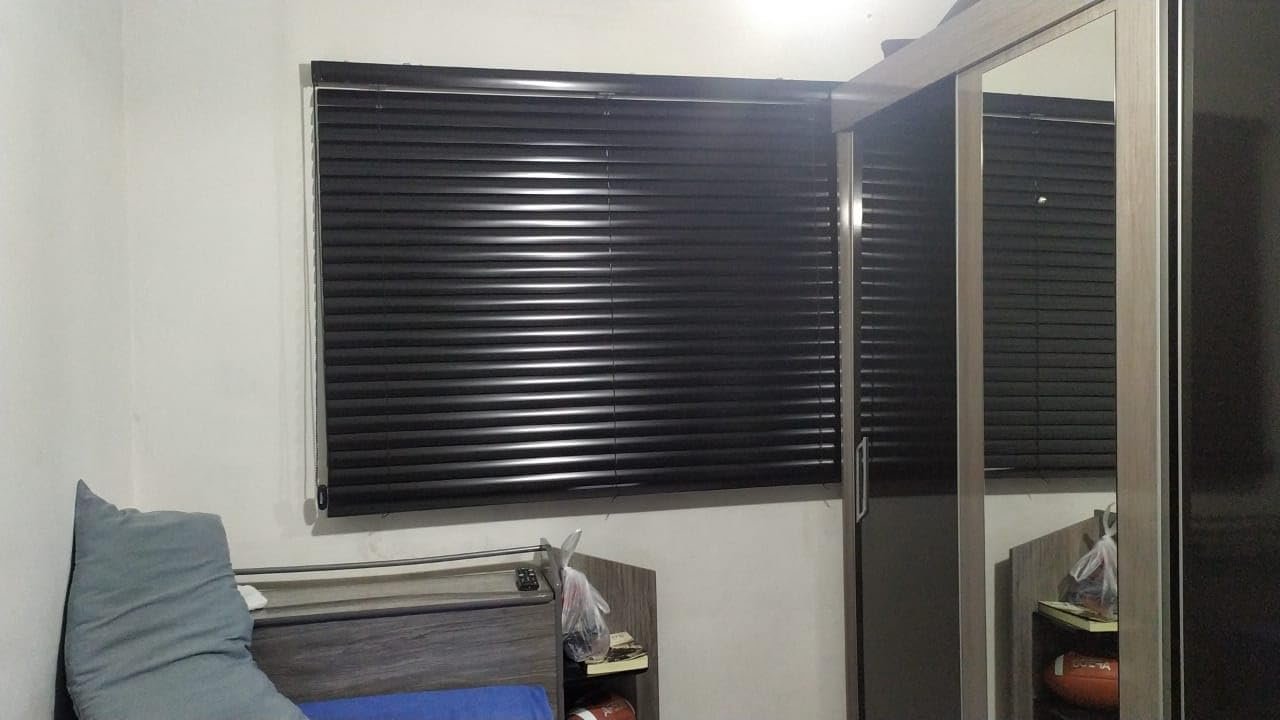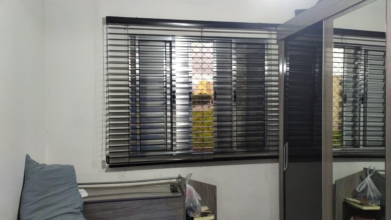 A persiana horizontal é ideal para quem precisa de um produto simples, prático, funcional e quer deixar o ambiente mais protegido e moderno. O giro das lâminas permite a privacidade total, parcial ou a visão completa da área externa e também a entrada de ventilação. Este modelo 50mm (largura de cada lâmina) é a versão mais robusta e resistente da persiana de alumínio. Também garante maior visibilidade. Mas, ela não garante um escurecimento total, porque sempre vaza luminosidades entre uma lâmina e outra. Tamanho: Como saber se esse tamanho de persiana dá certo para minha janela? Recomendamos que a persiana seja cerca de 20 cm maior do que a janela, tanto na largura como na altura (10 cm para cada direção). Então se a sua janela tem por exemplo 1,00 x 1,00m, recomendamos a compra de uma persiana que tenha 1,20 x 1,20m. Instalação: Não fazemos a instalação. Mas ela não é difícil. Não precisa de profissional especializado. Qualquer pessoa que saiba lidar com uma furadeira consegue instalar. A persiana vem pronta e montada, é só fazer a fixação. Enviamos o kit completo (com parafusos, buchas e suportes) e um manual de instalação bem detalhado. A persiana pode ser fixada no teto ou na parede. Lado do comando: O padrão é que o bastão e a cordinha de acionamento venham no lado direito (olhando de dentro para fora). É possível trocar o lado após a compra. Confirmaremos todos os detalhes (medidas, cor, lado do comando, altura, tipo de fixação, etc.), então mantenha seus dados atualizados. Podemos enviar suportes afastadores caso precise instalar a persiana mais distante da janela ou porta, evitando interferências com puxadores, maçanetas ou molduras. É só nos avisar. Aguardamos sua compra!