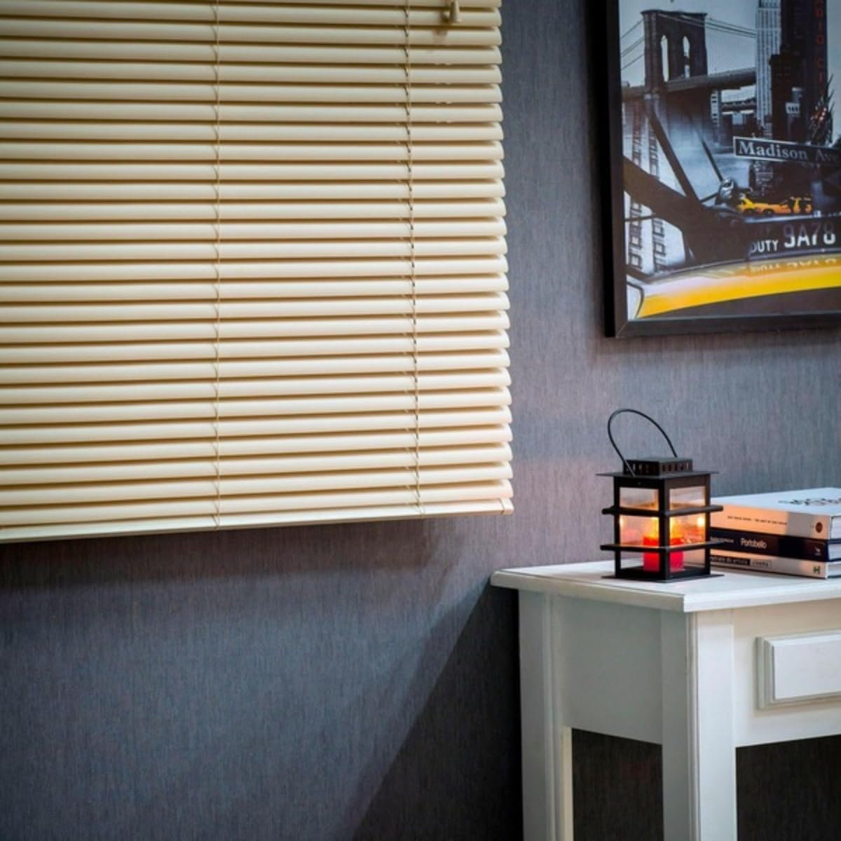 Persiana horizontal com 80 cm de largura e 130 cm de altura, ideal para janelas médias Fabricada em PVC resistente, fácil de limpar, que não acumula poeira e não mancha Cor bege neutra, combina com diversos tipos de decoração e proporciona ambiente acolhedor Sistema de acionamento prático com haste de regulagem e cordão para recolher Design moderno e funcional, indicado para uso em casa, escritórios, clínicas e espaços corporativos Produto leve, durável e de fácil instalação – acompanha suportes e parafusos