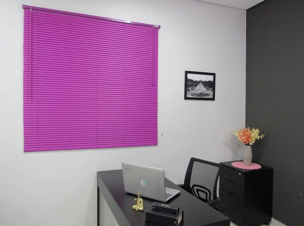 – Persiana Horizontal com lâminas de PVC 25mm de largura – Produto c/ ISO9001 – Cor: Lilás / Violeta – Tamanho: 140cm Largura x 140cm Altura *Medidas sem considerar a barra superior As persianas são cortinas modernas e versáteis, confeccionadas em material sintético de fácil limpeza e manutenção. Acumulam menos poeira do que as cortinas de tecido e podem ser limpas de maneira rápida com um aspirador de pó ou espanador. O modelo horizontal é simples de instalar e possibilita o contr