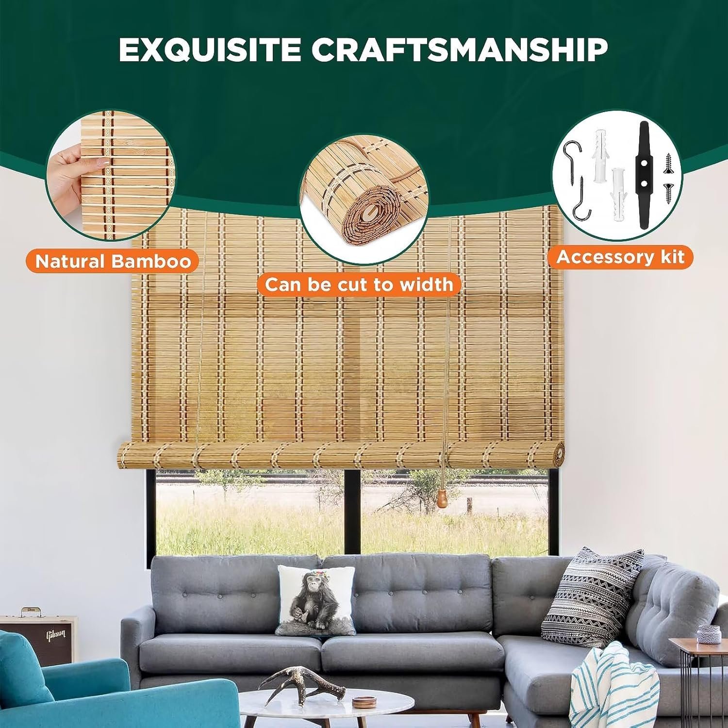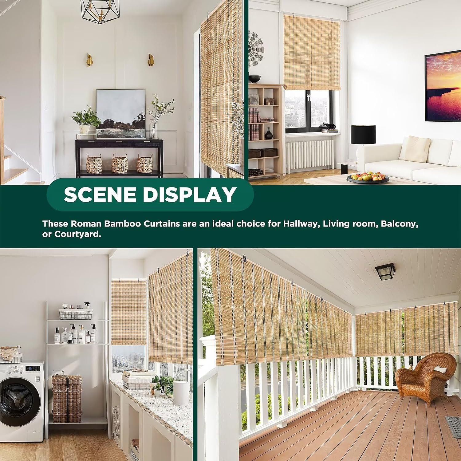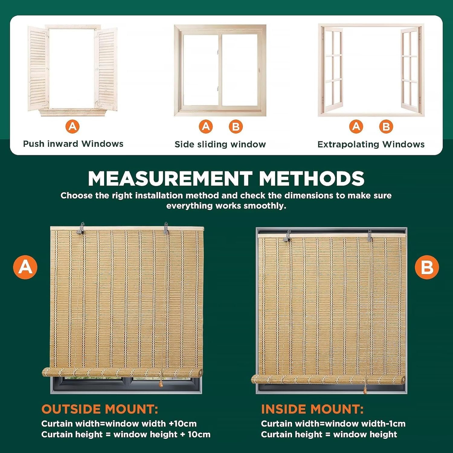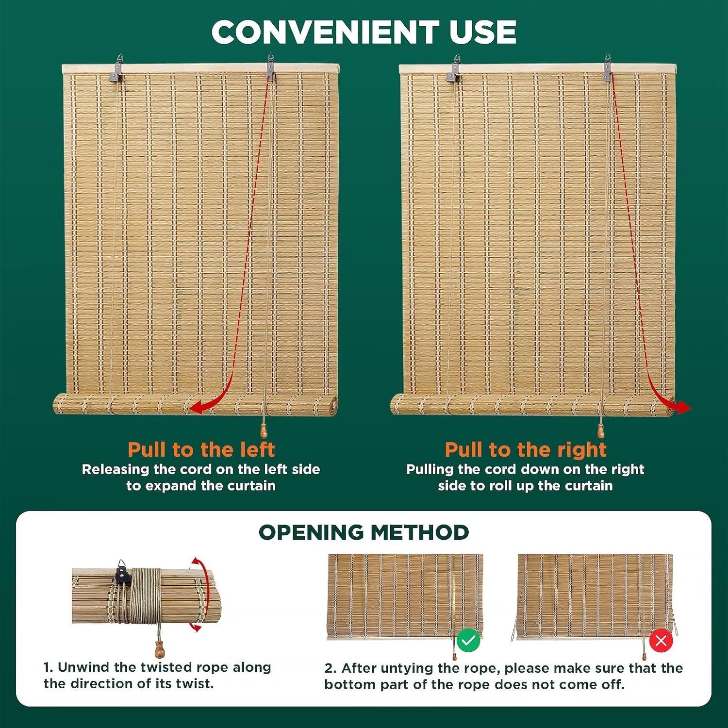 Fácil de instalar: nossas persianas de bambu são fáceis de instalar e podem ser instaladas em qualquer janela ou porta. Você pode instalá-la facilmente em sua janela ou porta sem a ajuda de outras pessoas. O design exclusivo da persiana facilita a operação e o ajuste da altura para atender às suas necessidades.