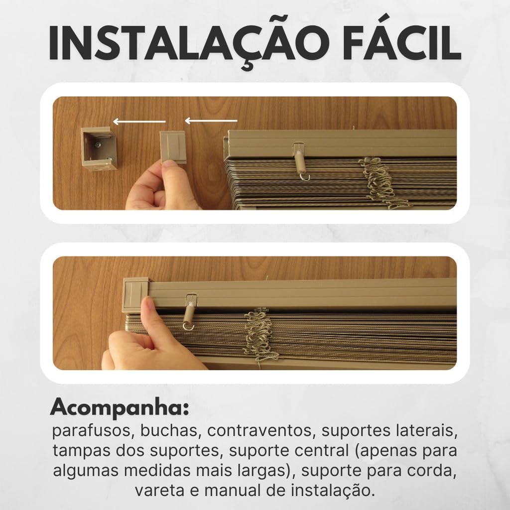estas cortinas e persianas oferecem:Ajuste personalizado: Controle a luminosidade com o sistema de inclinação das lâminas horizontais.Durabilidade: Resistente ao desbotamento e deformações, mesmo com exposição solar prolongada.Versatilidade: Combina