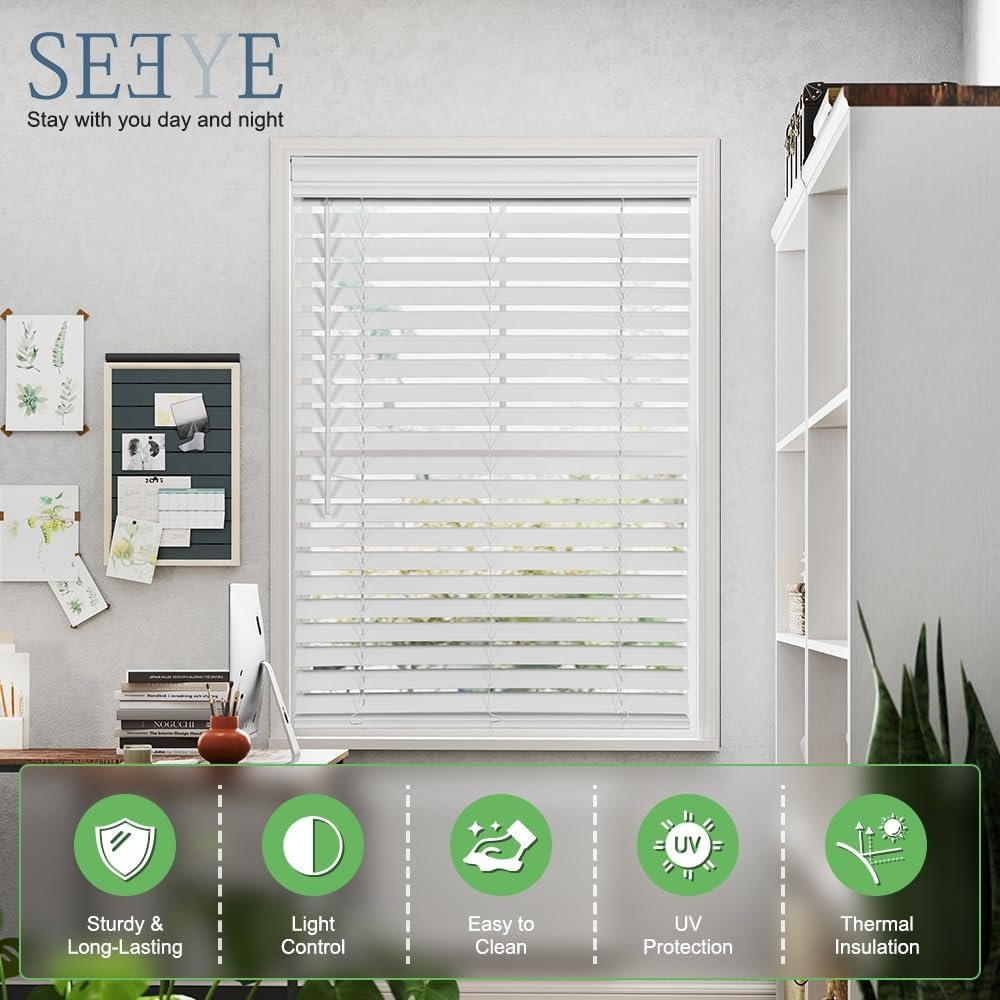 Persianas de madeira sintética SEEYE de 5 cm para janelas internas